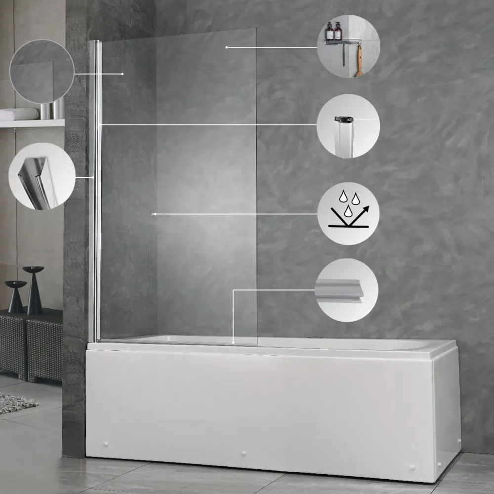 ● Lățime: paravanele de baie fixe și dintr-o singură bucată acoperă 60–80 cm, modelele din două bucăți sau cu uși glisante acoperă aproximativ 100–120 cm, în timp ce soluțiile cu uși glisante duble pot acoperi întreaga lungime a căzii.