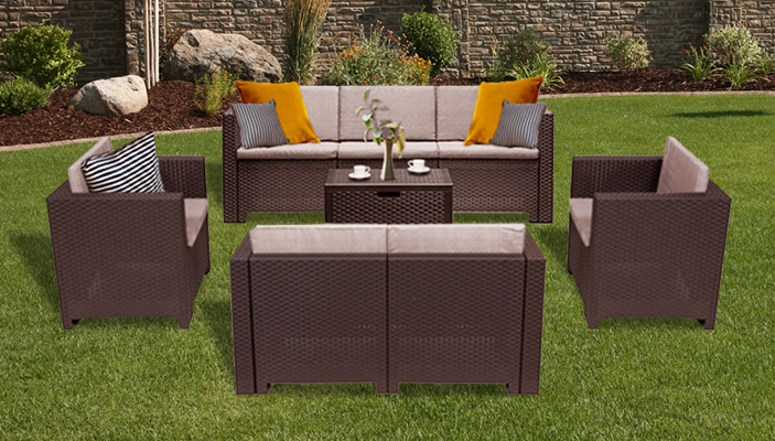 Confortabil și elegant, setul italian de mobilier City Large în maro este perfect pentru găzduirea petrecerilor mai mari. Setul include două scaune de 57,5x 64x 75 cm, o canapea cu două locuri de 57,5x 64x 131 cm, o canapea cu trei locuri de 57,5x 64x 188 cm și o masă dreptunghiulară de 37x 48x 69,5 cm. Acest set de mobilier de grădină din 7 piese permite întregii familii și prietenilor să se relaxeze confortabil în aer liber.