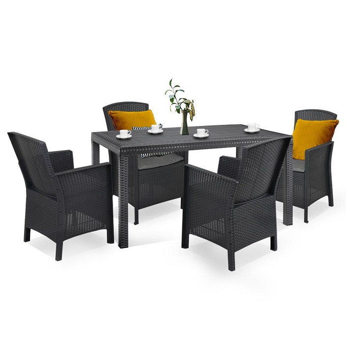 Fabricat din plastic rezistent la radiațiile UV și la intemperii. Setul de mobilier se potrivește ideal în orice spațiu din casă, creând un loc ideal pentru relaxare în aer liber. Suprafața sa inspirată de țesătura naturală a ratanului este unul dintre avantajele estetice ale produsului.