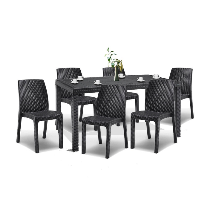 Fabricat din plastic rezistent la radiațiile UV și la condițiile meteorologice. Setul de mobilier se potrivește ideal în orice spațiu din casă, creând un loc ideal pentru relaxare în aer liber. Suprafața sa inspirată de țesătura naturală a ratanului este unul dintre avantajele estetice ale produsului.