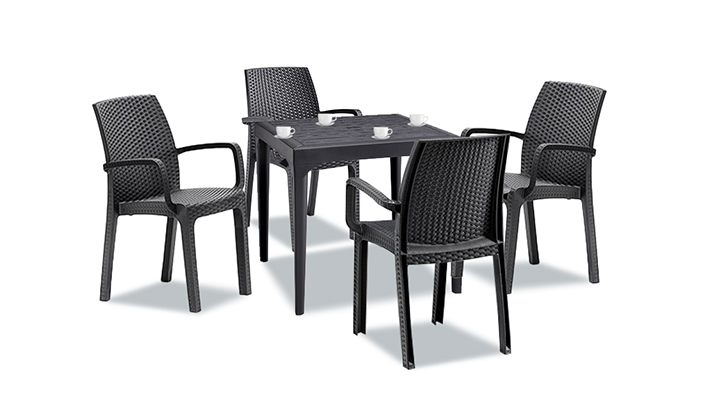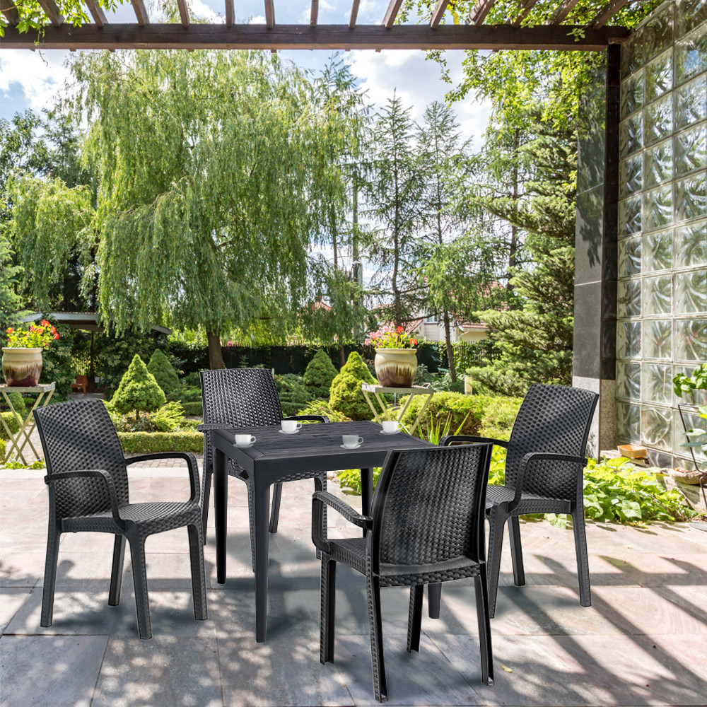 Setul include o masă de grădină din plastic Malina (80x80x74 cm) și patru scaune de grădină Verdi (57x59x86). Designul spațios vă permite să petreceți mese plăcute și să conversați în aer liber cu prietenii și familia.