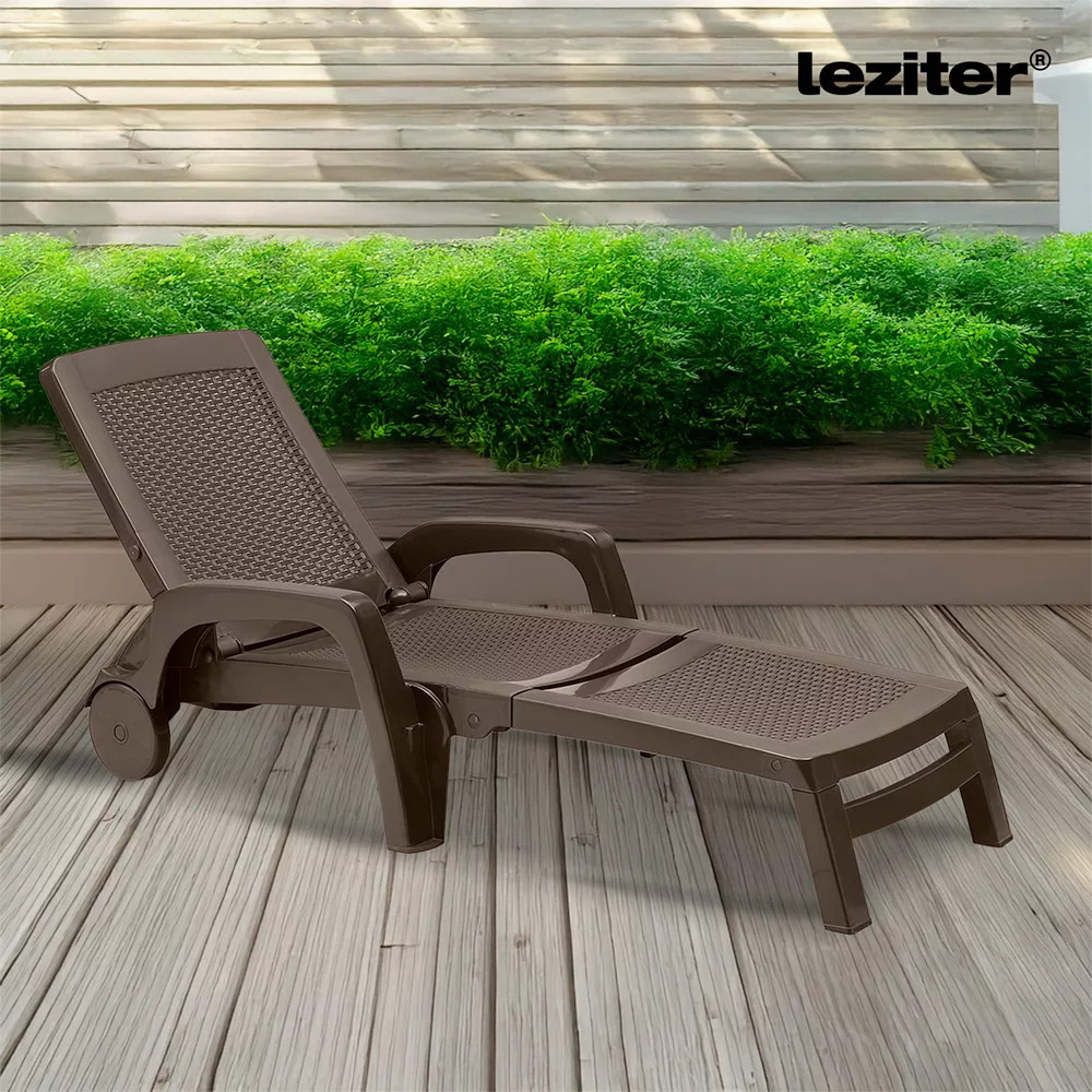 Șezlongul Omaha maro, cu dimensiunile de 190x70x46 cm, oferă confort de lungă durată, fie că vă bronzați, citiți sau vă relaxați în grădină! Designul său ergonomic vă asigură că puteți sta confortabil pe el ore întregi. Spătarul reglabil vă permite să găsiți unghiul perfect de înclinare. Materialul său ușor și durabil este rezistent la intemperii, așa că nu trebuie să vă faceți griji cu privire la ploaie sau la lumina puternică a soarelui. Cu roțile sale practice, îl puteți muta cu ușurință prin grădină sau terasă. Designul cu efect de ratan îi conferă un aspect modern, fiind elegant în orice decor.
