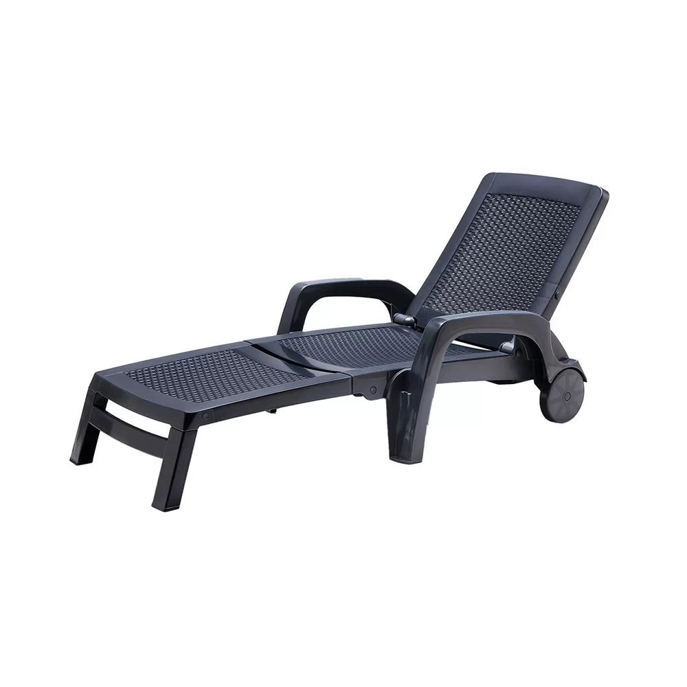 Șezlongul Omaha în culoarea grafit, cu dimensiunile de 190x70x46 cm, oferă confort de lungă durată, fie că vă bronzați, citiți sau vă relaxați în grădină! Designul său ergonomic vă asigură că puteți sta confortabil pe el ore întregi. Spătarul reglabil vă permite să găsiți unghiul perfect de înclinare. Materialul său ușor și durabil este rezistent la intemperii, așa că nu trebuie să vă faceți griji cu privire la ploaie sau la lumina puternică a soarelui. Cu roțile sale practice, îl puteți muta cu ușurință prin grădină sau terasă. Designul cu efect de ratan îi conferă un aspect modern, fiind elegant în orice decor.