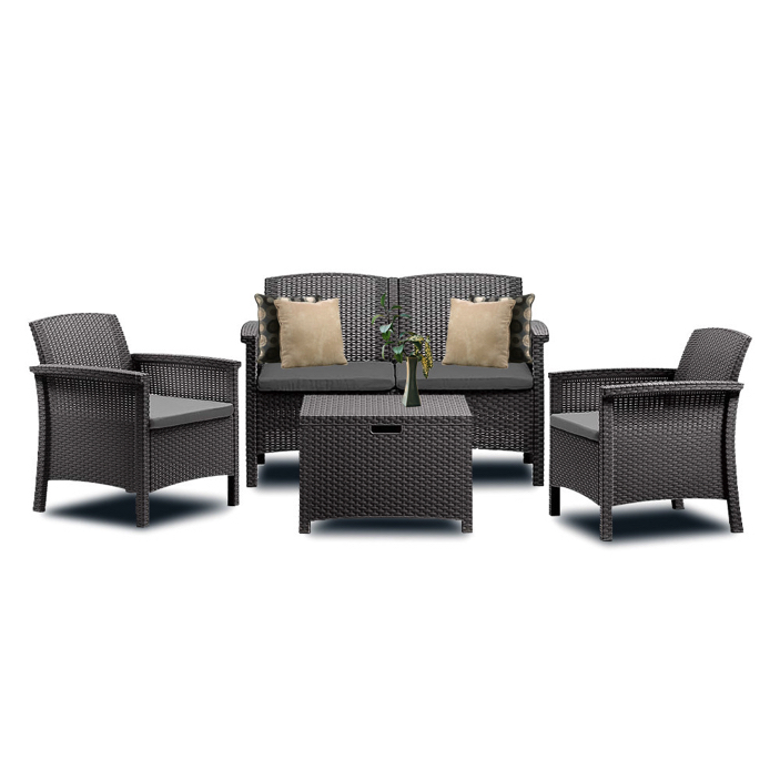 Această piesă de mobilier este o soluție confortabilă și practică pentru relaxare și destindere în aer liber. Setul este format din două fotolii, o canapea cu două locuri și o măsuță de cafea, fiind o alegere ideală pentru reuniuni de familie, grătare cu prietenii lângă piscină sau pur și simplu pentru relaxare în aer liber. Dar nu îl recomandăm doar pentru locuințe, deoarece puteți crea o atmosferă specială de lounge și pe terasa unui restaurant, cafenea sau hotel cu ajutorul acestui mobilier.