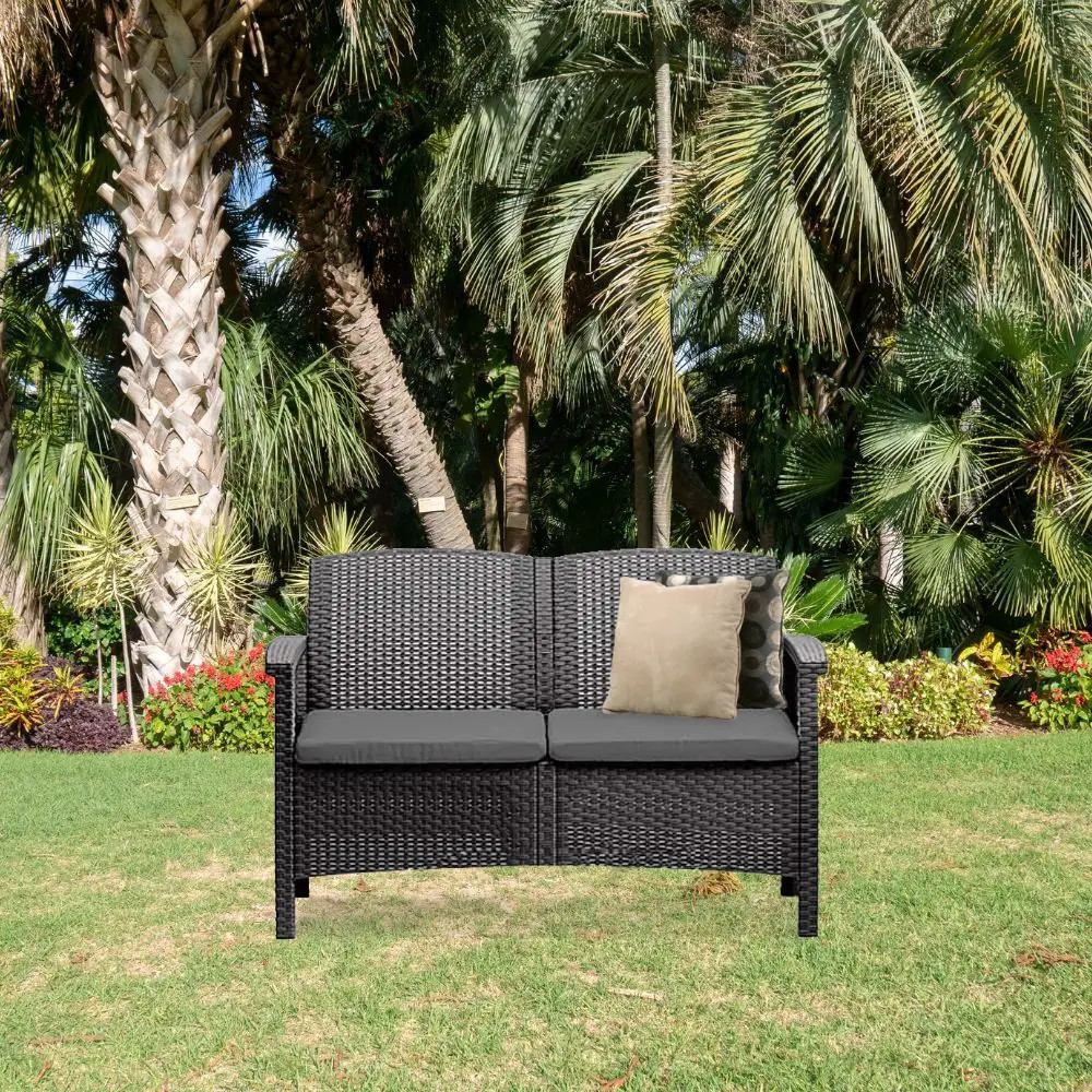 Canapeaua cu dimensiunile de 117 x 64,5 x 76 cm este potrivită atât pentru utilizare în exterior, cât și în interior, deoarece este rezistentă la intemperii. Va fi un element important al mobilierului de grădină sau terasă, oferind locuri pentru două persoane și asigurând cel mai înalt nivel de confort. Această piesă de mobilier este practică, solidă, durabilă și excepțional de estetică, putând fi utilizată atât în spații private, cât și în spații comerciale (de exemplu, restaurante, hoteluri, cafenele).