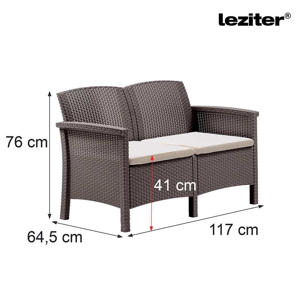 Canapeaua de grădină Venus iese în evidență chiar și printre mobilierul de exterior de înaltă calitate. Cu dimensiunile sale de 117 x 64,5 x 76 cm și o înălțime a șezutului de 41 cm, este o alegere perfectă pentru două persoane, fie că este vorba de o cafea după-amiaza sau de o conversație intimă.