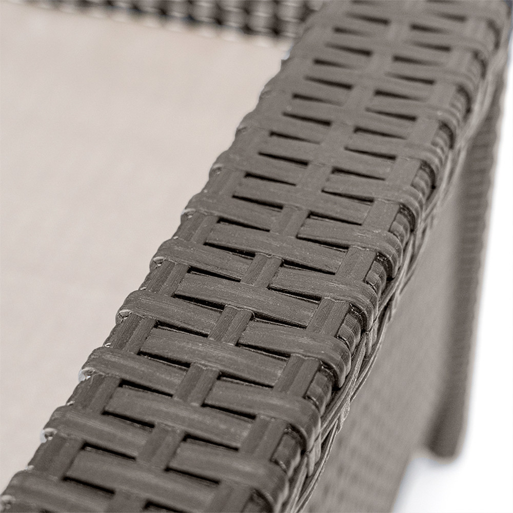 Setul de mobilier de grădină Venus are toate caracteristicile de care aveți nevoie: rezistent la intemperii, confortabil, estetic și nu necesită întreținere. Suprafața cu efect de ratan emană eleganță modernă, în timp ce șezutul capitonat oferă confort pentru ore lungi de stat.