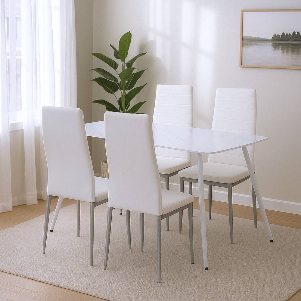 Renton 4+1 dining set - Alb-gri modernitate, calitate atemporală