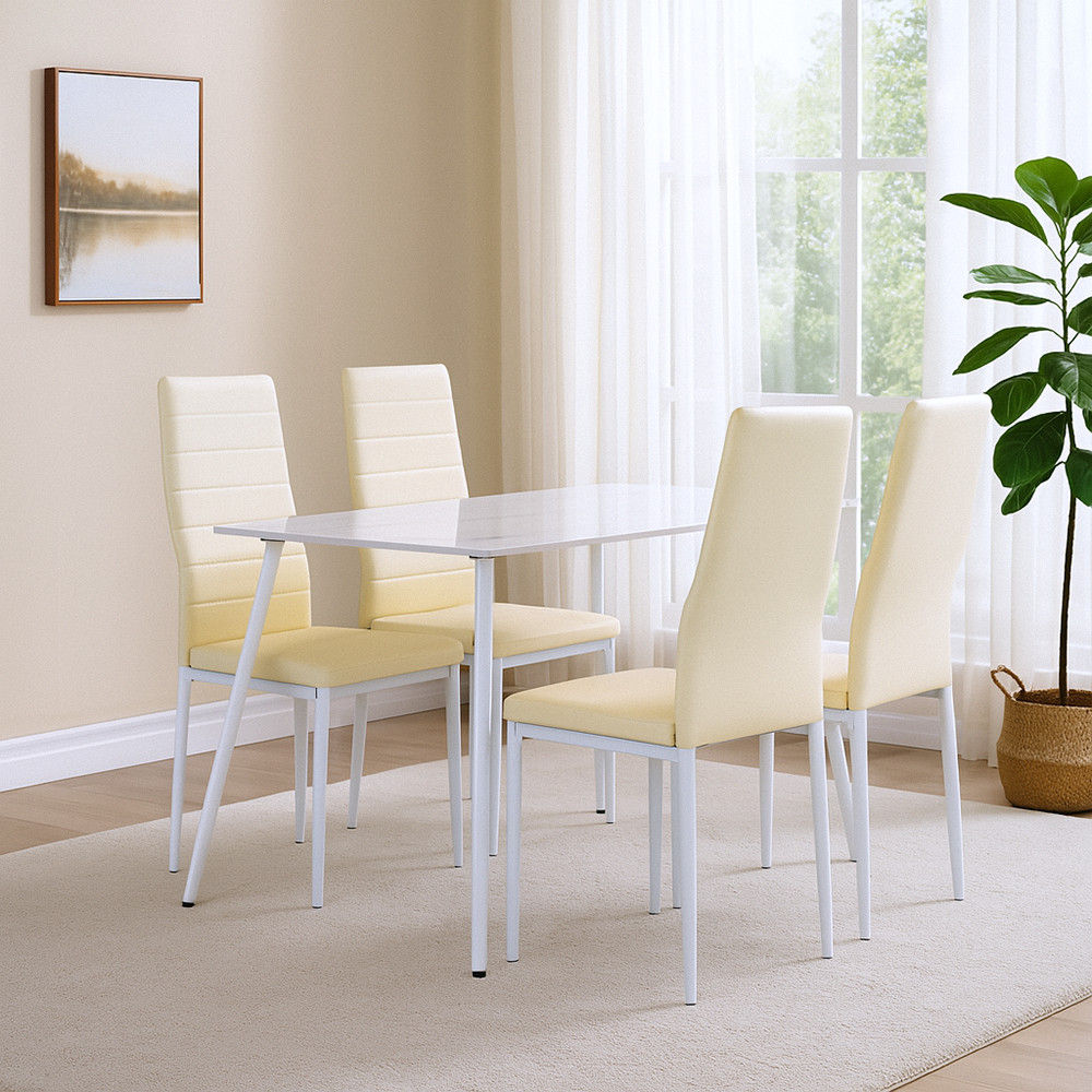 Set de sufragerie Jenna 4+1 - design bej, contrast alb, caracter curat