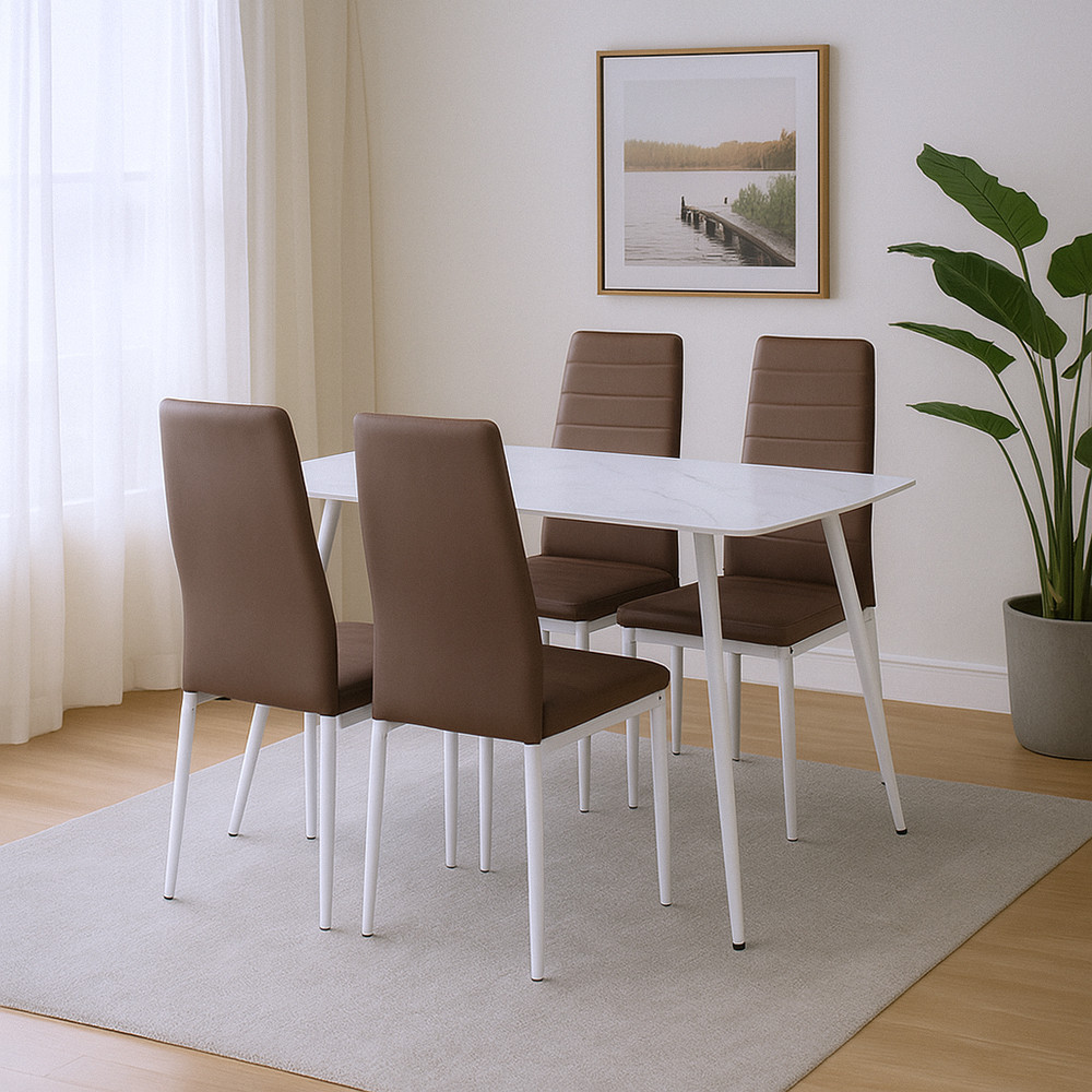 Set de sufragerie Jenna 4+1 - design maro, contrast alb, caracter curat