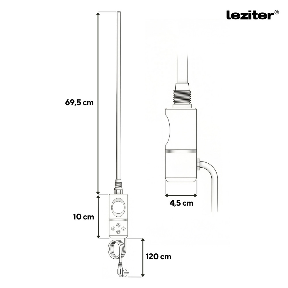Cartușul de încălzire electrică Leziter 800 W cu termostat digital este una dintre cele mai puternice și fiabile soluții de încălzire. Este alegerea perfectă dacă doriți să utilizați radiatorul uscătorului de prosoape ca o încălzire electrică autonomă, chiar și în afara sezonului de încălzire. Cu controlul termostatic încorporat, puteți seta cu precizie temperatura dorită, astfel încât cartușul de încălzire să funcționeze întotdeauna cu cel mai optim consum de energie.