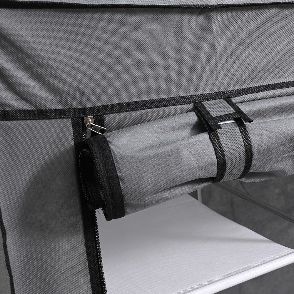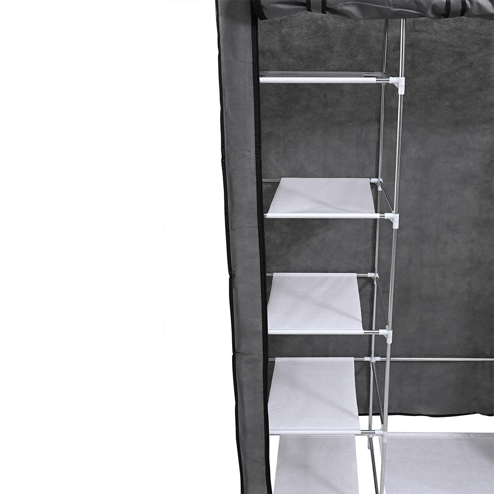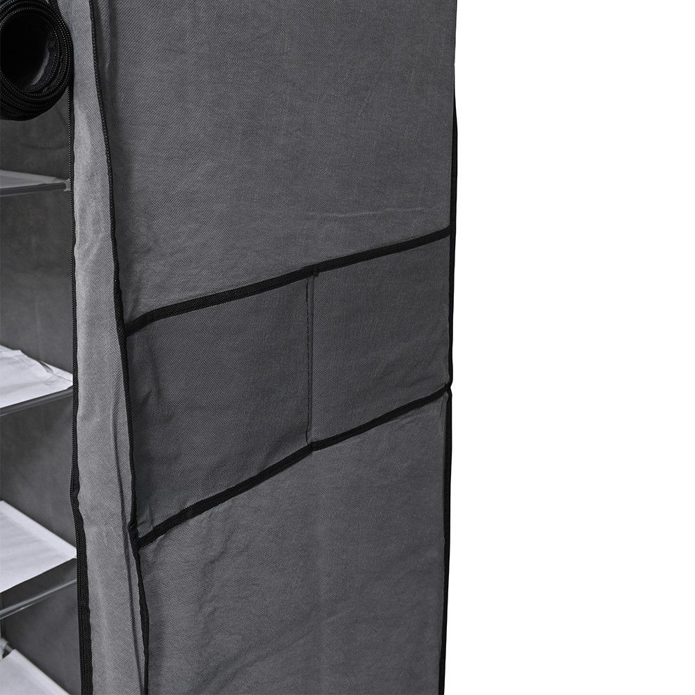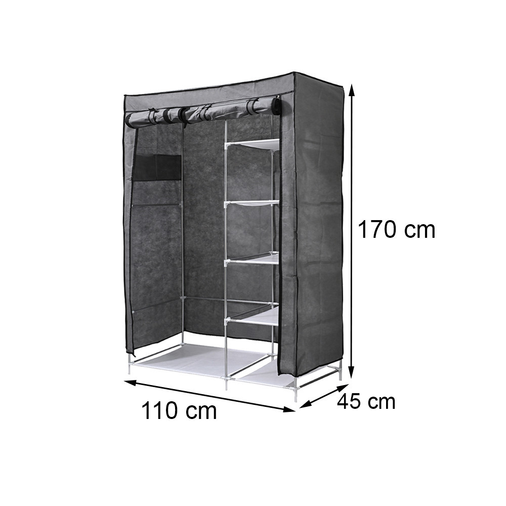 - Design multifuncțional: Dulapul are mai multe rafturi de depozitare și o tijă de agățare, permițându-vă să organizați diferite tipuri de haine și accesorii. Buzunarele laterale oferă opțiuni suplimentare de depozitare.