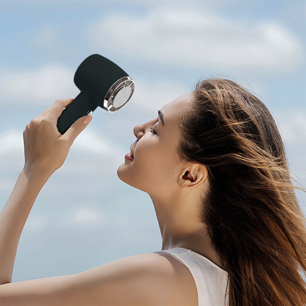 Datorită unghiului de înclinare reglabil al ventilatorului, nu numai că îl puteți folosi în mână, dar îl puteți și ține fix pe birou - astfel încât să vă puteți bucura de efectul de răcire în timp ce scrieți, lucrați sau vă machiați.