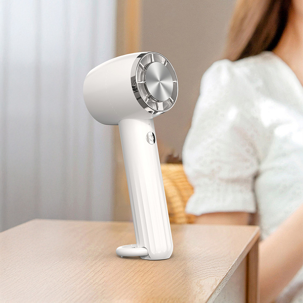 Datorită unghiului de înclinare reglabil al ventilatorului, nu numai că îl puteți folosi în mână, dar îl puteți și ține fix pe birou - astfel încât să vă puteți bucura de efectul de răcire în timp ce scrieți, lucrați sau vă machiați.
