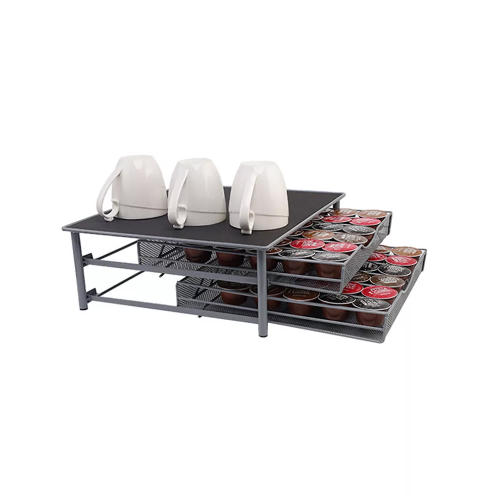 Suportul pentru capsule cu sertar nu este doar practic, ci și elegant. Logo-ul imprimat pe sticlă îi conferă un aspect modern, făcându-l perfect pentru orice bucătărie sau mediu de birou. Datorită stratului de cauciuc, suportul pentru capsule nu alunecă și este confortabil și sigur de utilizat.