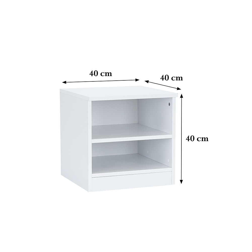 Dulapul de noptieră măsoară 40x40x40 cm și se potrivește perfect în dormitoarele mici, fără a ocupa prea mult spațiu. Măsuța de noptieră este proiectată cu 2 rafturi unde puteți păstra obiecte importante, folosite frecvent, cum ar fi cărți, ochelari sau telefon.