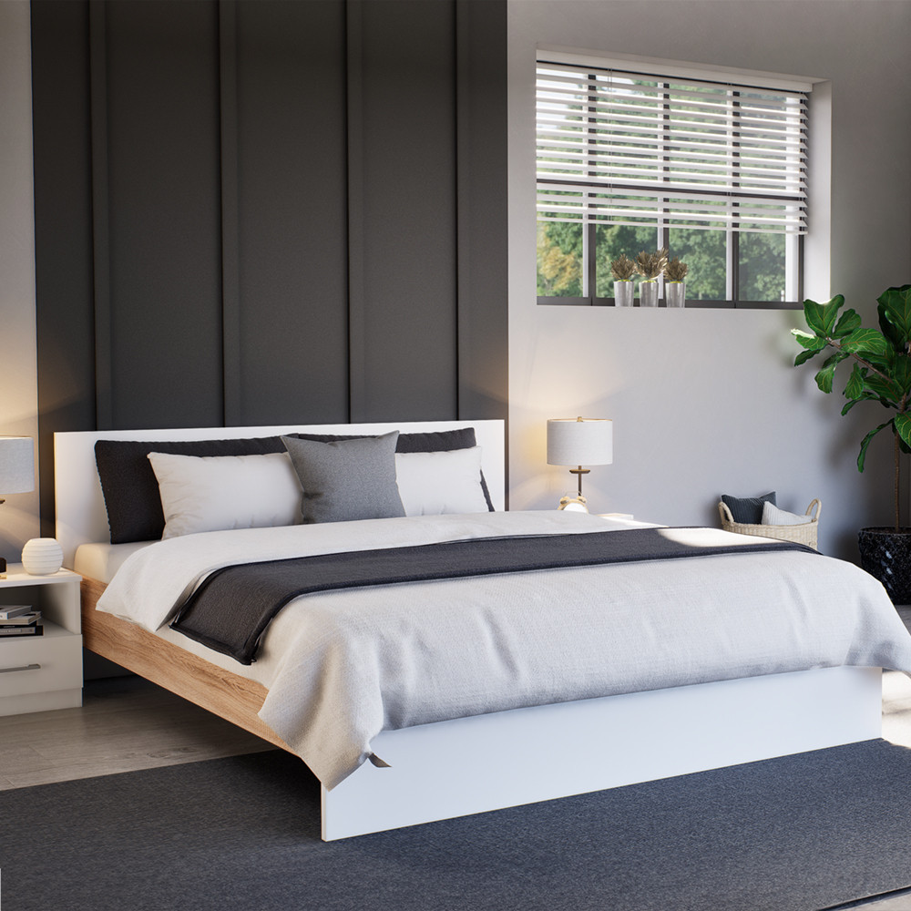Pat dublu Miami fără cadru 160x200 cm alb-stejar sonoma