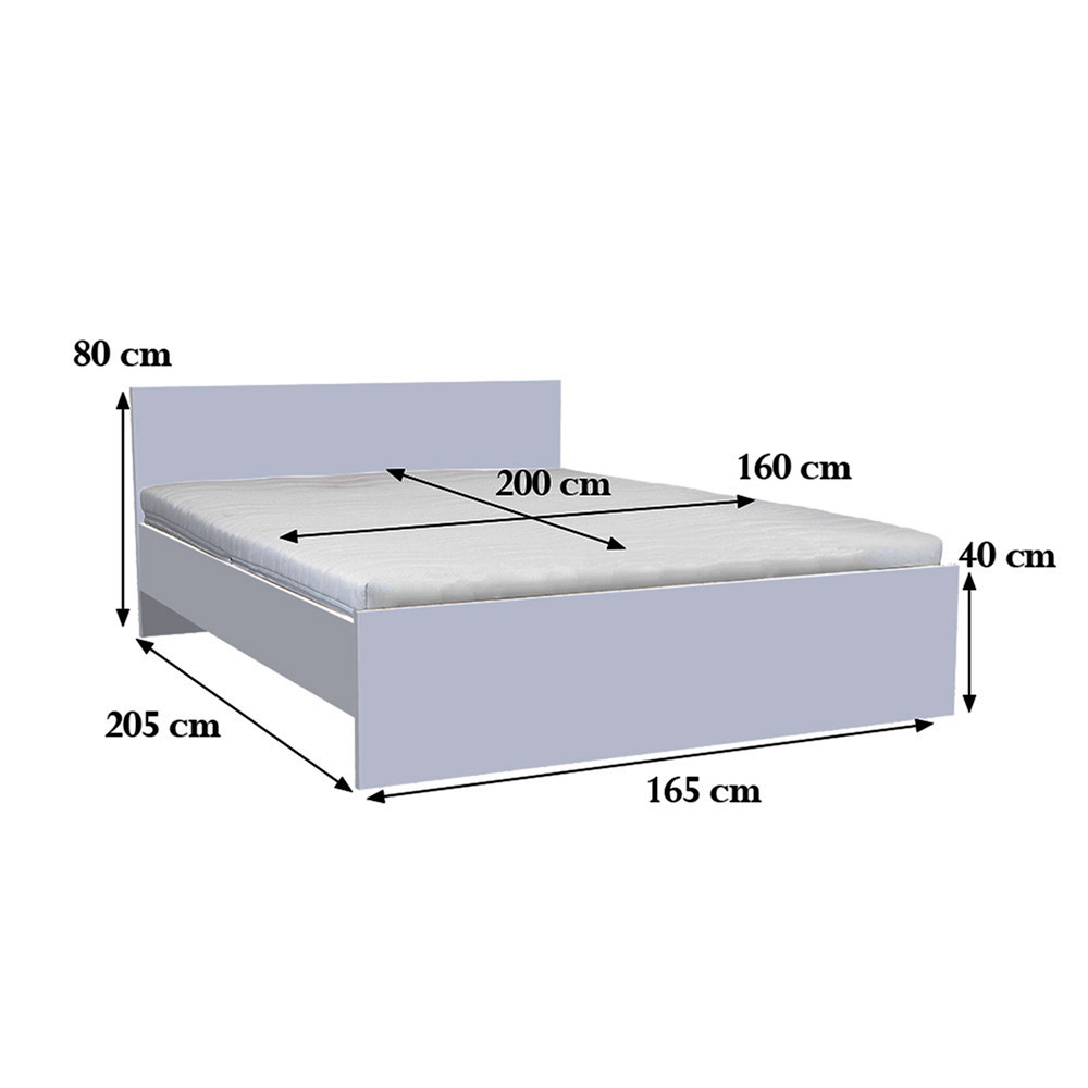 | Dimensiuni | Cadru de pat: 205 x 165 cm, Noptieră: 80 x 165 cm, Saltea (dimensiune recomandată): 200 x 160 cm. |