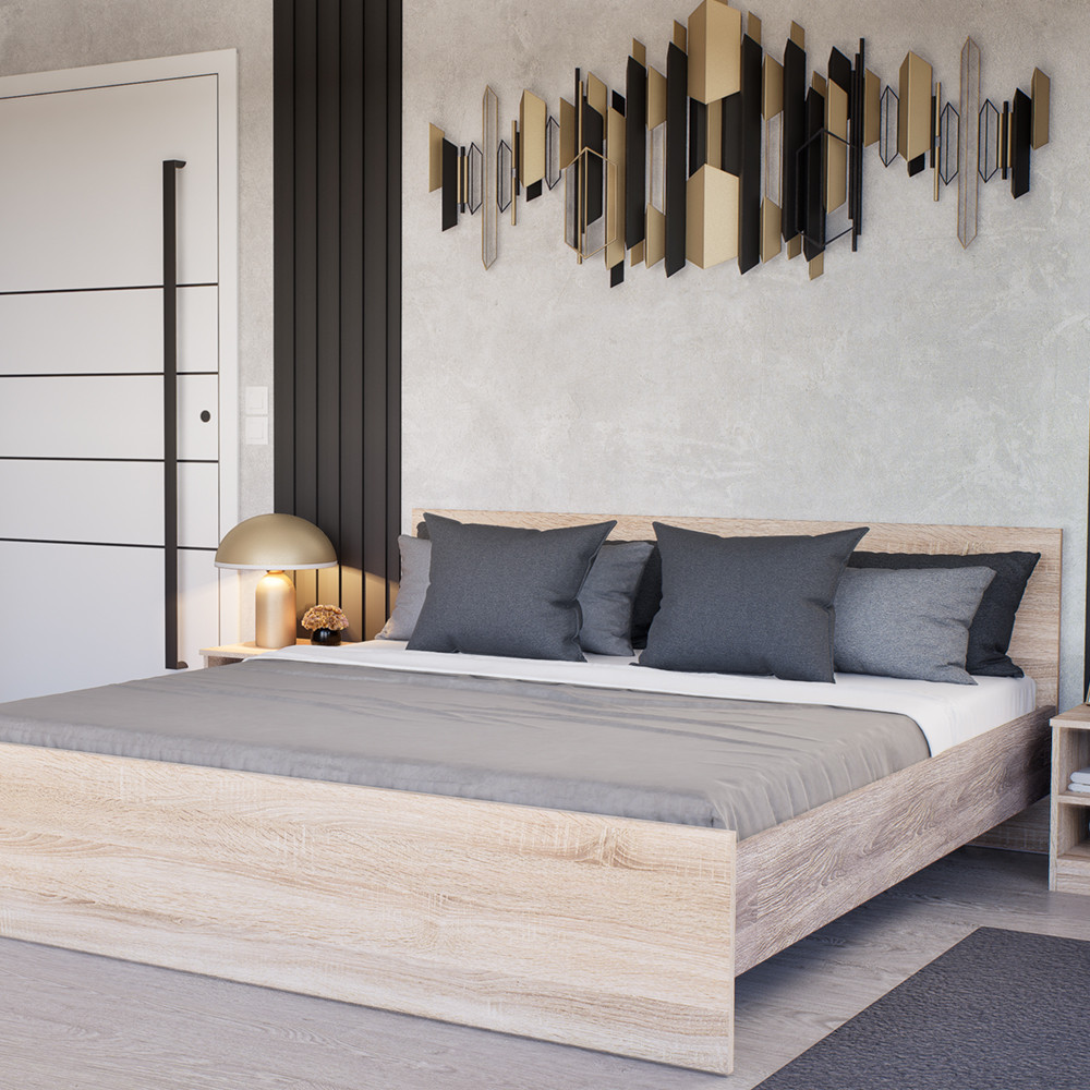 | Material | Plăcuță de mobilier de înaltă calitate, cu panouri laterale din stejar York, tăblie și capăt de pat din stejar Sonoma. |