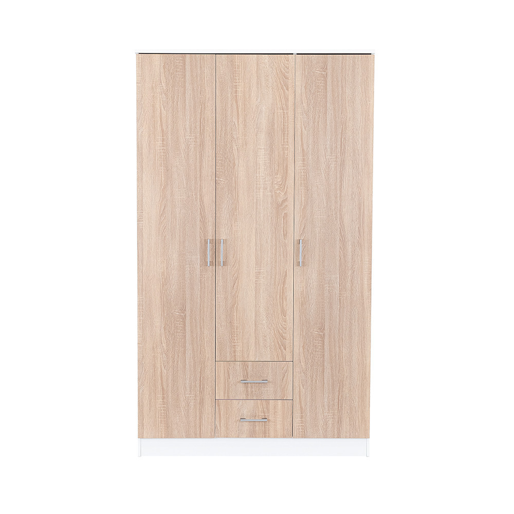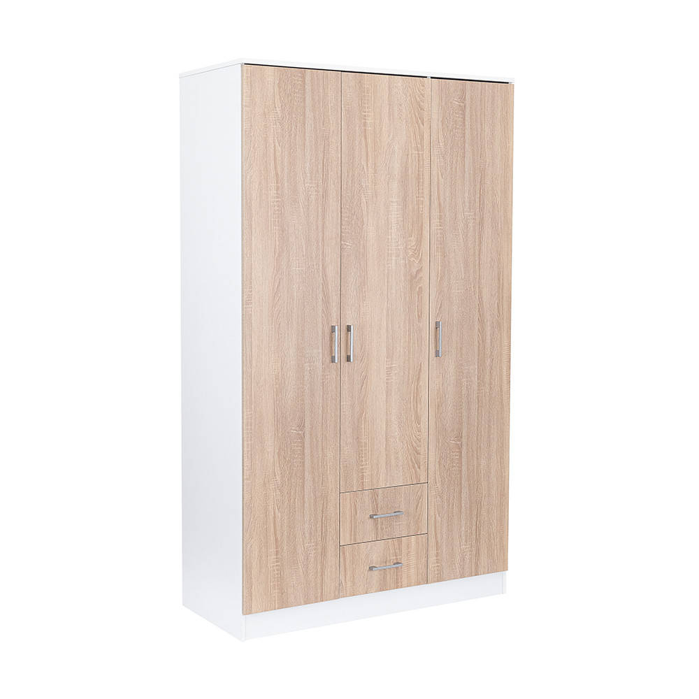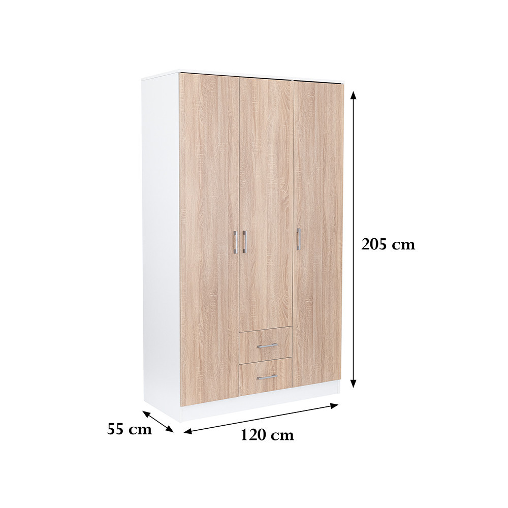 Elegantul fațadă din stejar Sonoma și efectul de lemn corp alb Combinația sa creează o armonie perfectă atât în living, cât și în dormitor. THE 205 cm înălțime, 120 cm lățime și 55 cm adâncime Un dulap este o alegere ideală pentru oricine dorește să își organizeze hainele și accesoriile.