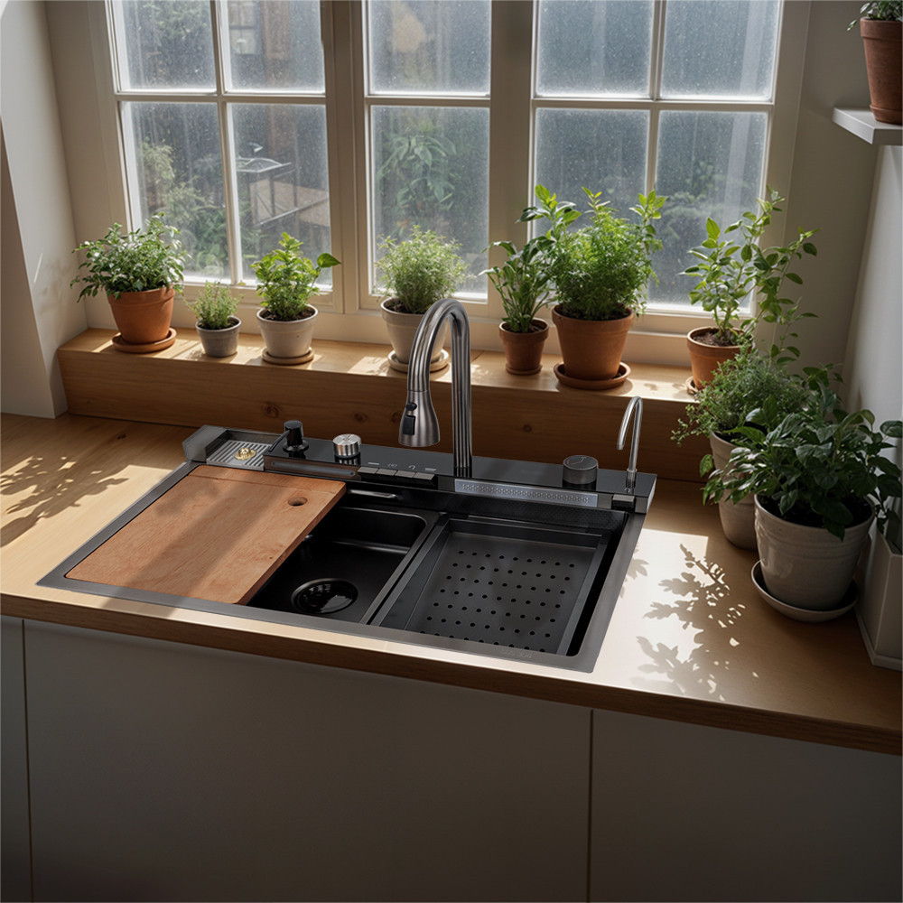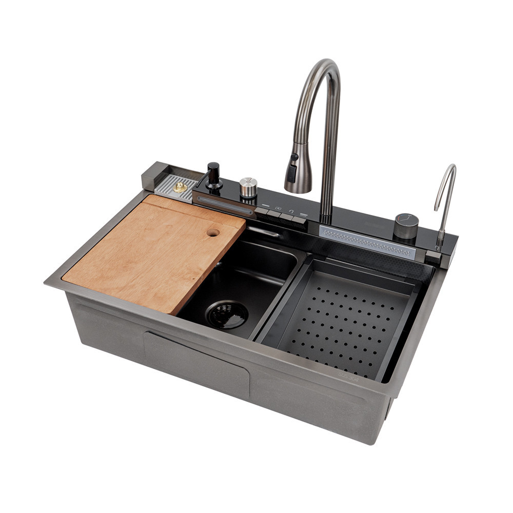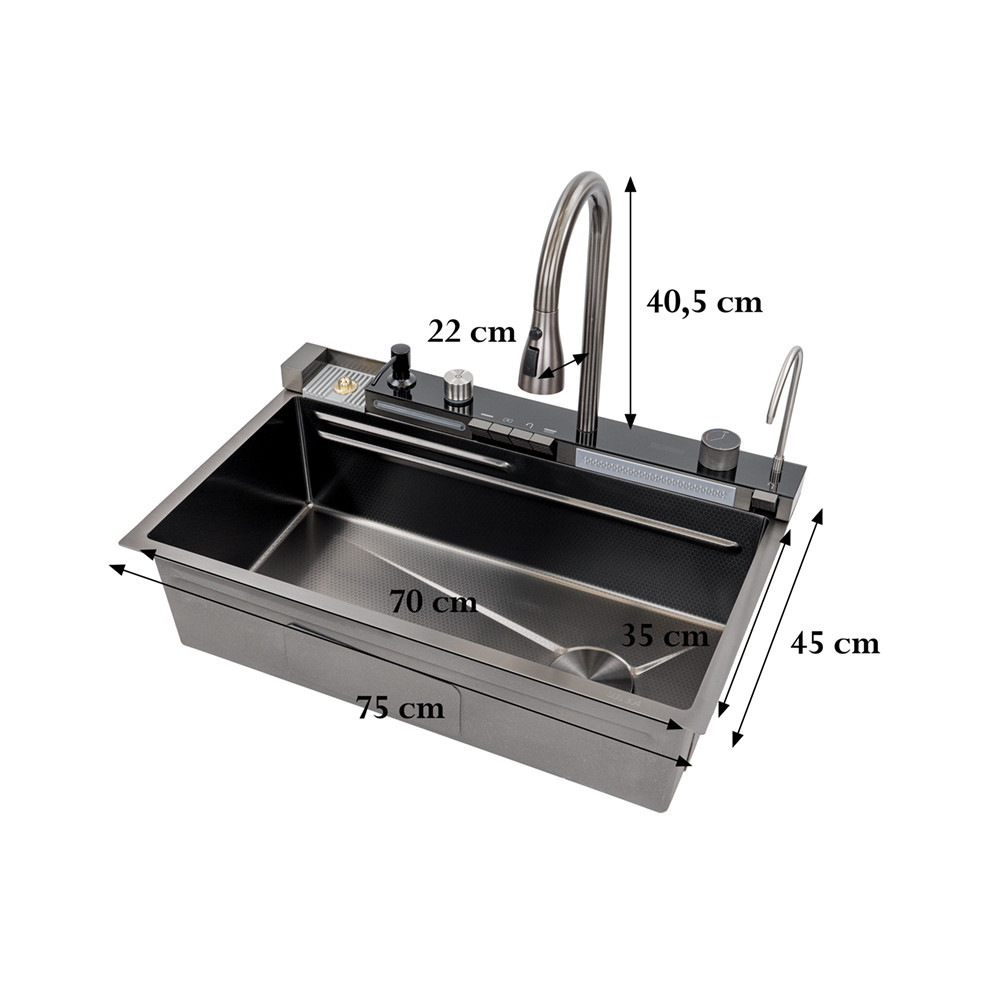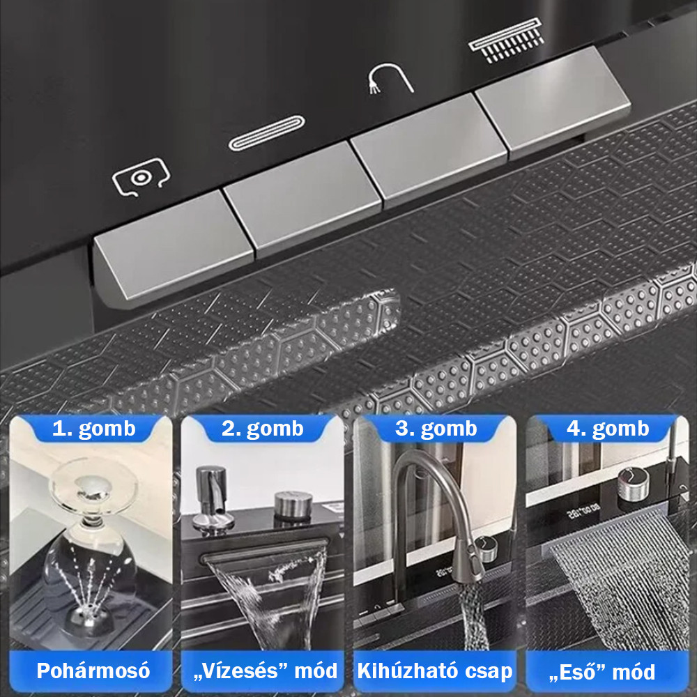 Panou de control digital : Afișajul digital al chiuvetei vă permite să reglați cu ușurință temperatura și debitul apei, permițându-vă să controlați cu precizie cantitatea de apă utilizată în timpul spălării vaselor.