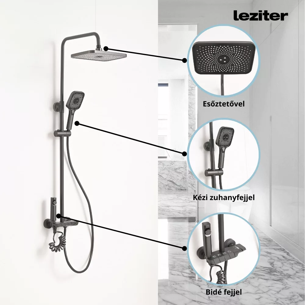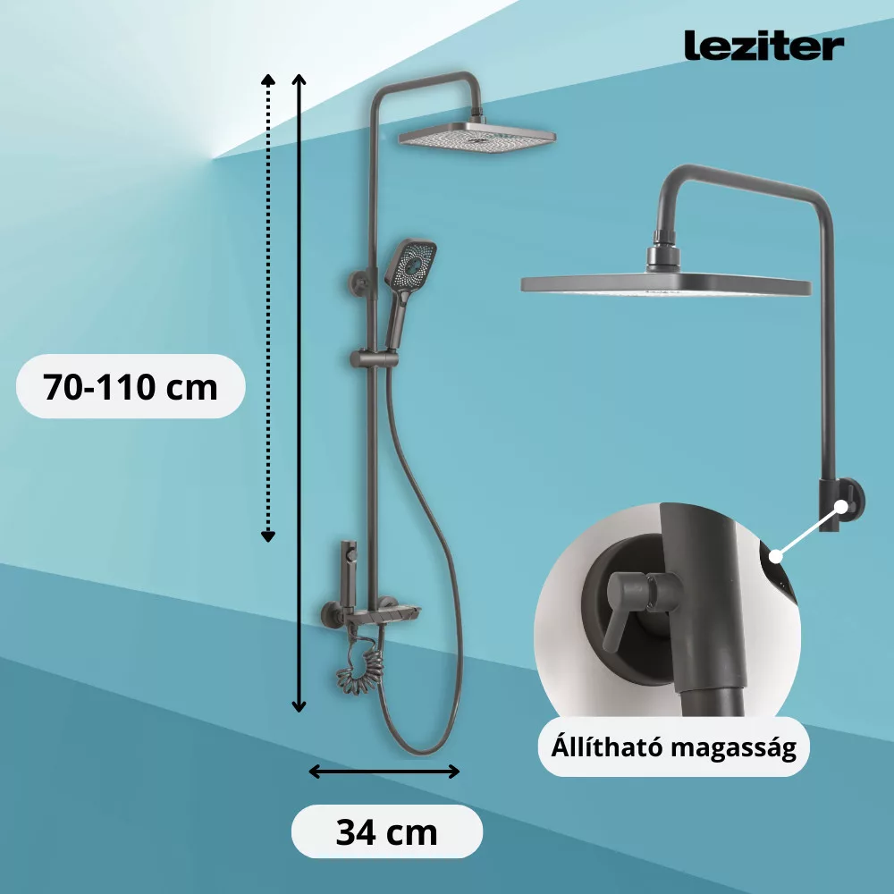 Setul de duș multifuncțional Eliz, cu finisaj grafit, este o alegere ideală pentru cei care nu doresc să facă compromisuri în ceea ce privește stilul și funcționalitatea. Materialele premium și designul atent garantează că acest set de duș va oferi ani de funcționare fiabilă.