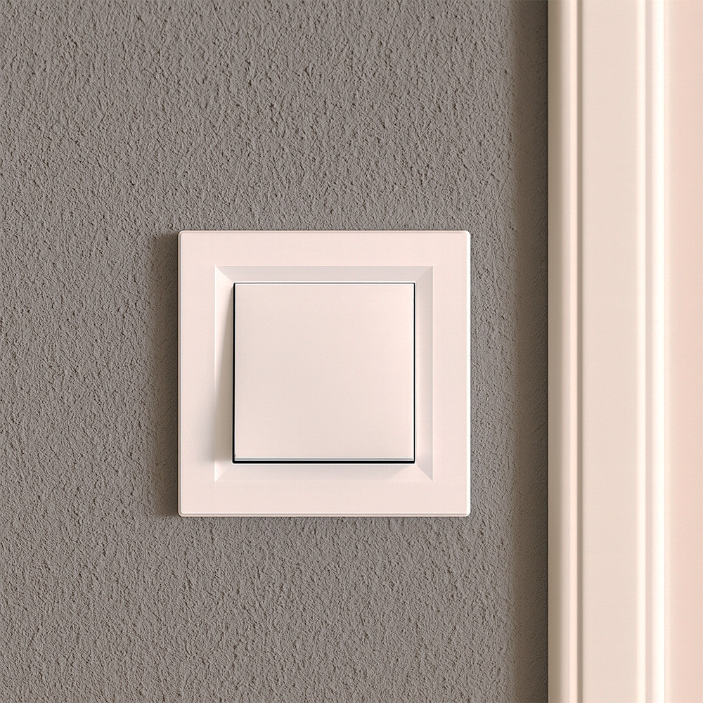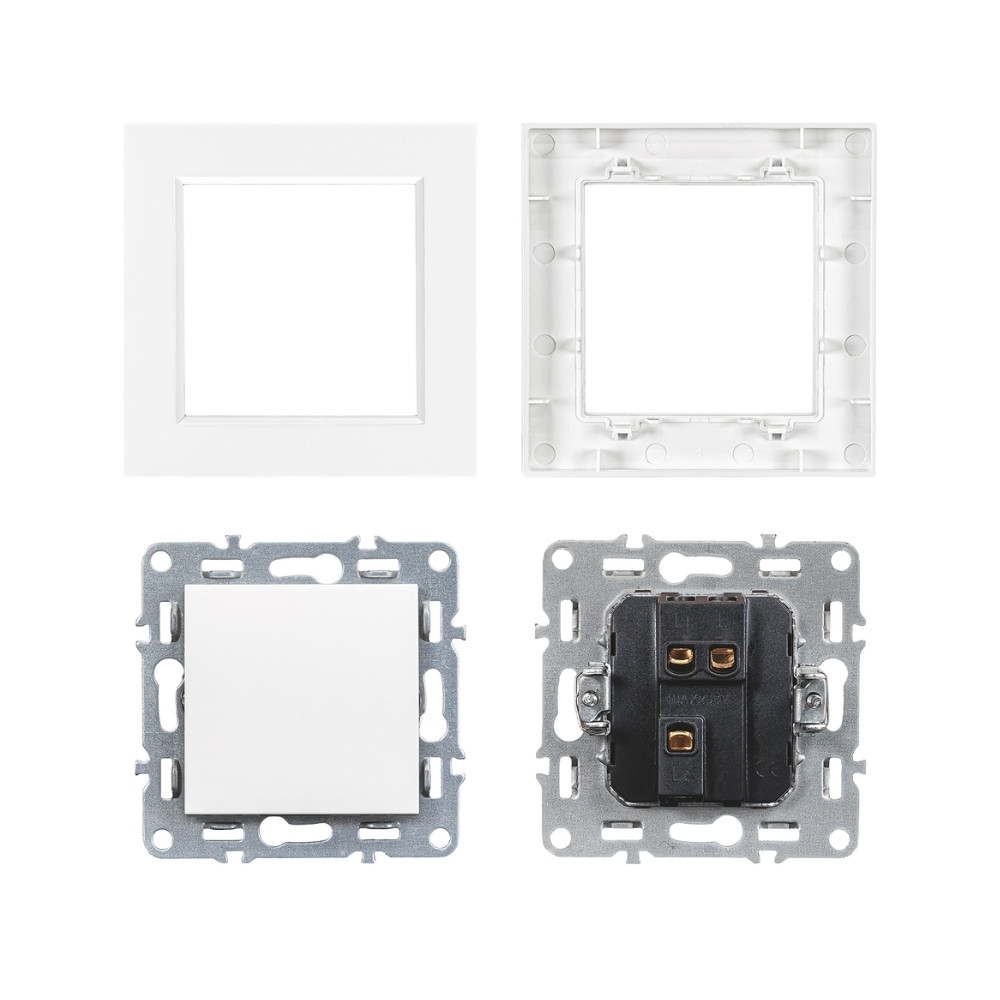 Acest model vine cu rama albă Nova One instalată din fabrică, oferind comutatorului un aspect uniform, neîngrijit, imediat după instalare. Marginea rotunjită și dimensiunea compactă de 83 × 83 mm îi conferă un stil modern, curat, care se armonizează cu majoritatea interioarelor.
