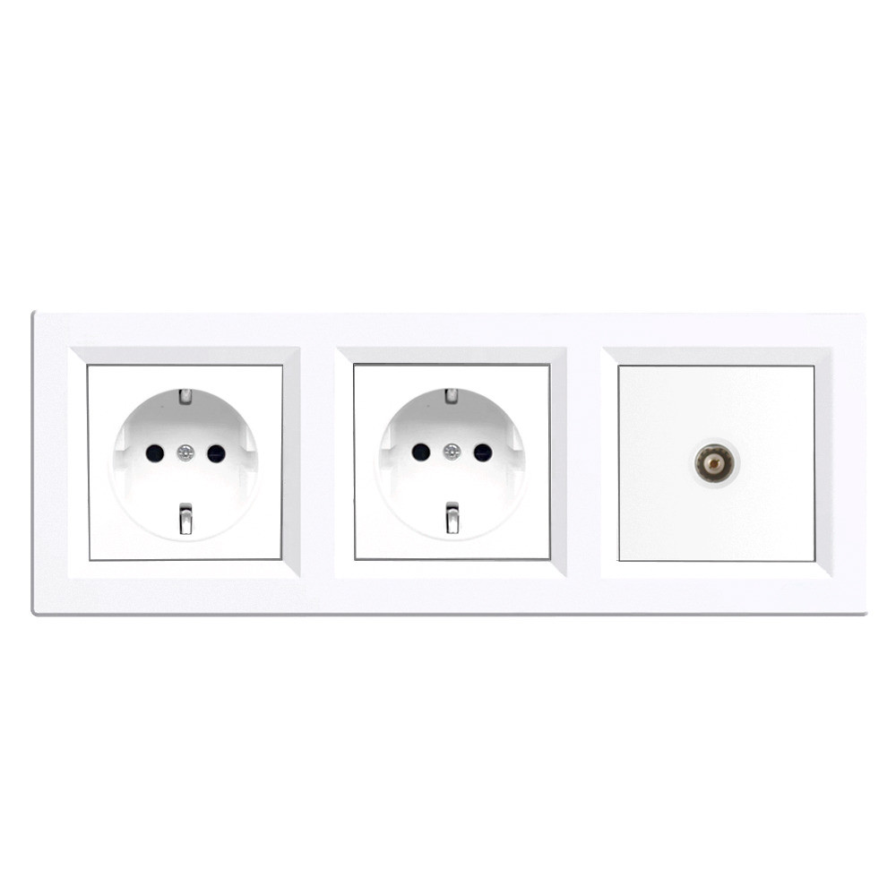 Priza dublă cu împământare Nova III cu priză TV este o soluție practică, cu economie de spațiu, care oferă un singur ansamblu pentru alimentarea în siguranță a două aparate electrice și o conexiune stabilă de semnal pentru un televizor sau o unitate interioară. Prizele cu împământare funcționează la un curent nominal de 16 A și 250 V CA și sunt potrivite pentru aparatele de uz casnic și de birou, precum și pentru consumatorii de putere mai mare, cum ar fi aparatele de bucătărie și echipamentele informatice. Priza TV RF coaxială asigură o transmisie de semnal fiabilă, fără interferențe, pentru o calitate excelentă a imaginii și a sunetului.Produsul are un design încastrat pentru montarea într-o cutie de montare standard cu fixare cu șuruburi. Designul modular fără ramă și rama triplă albă furnizată oferă un aspect modern și curat care se integrează armonios cu restul gamei Nova. Protecția IP20 înseamnă că poate fi utilizat numai în medii interioare uscate, fără praf (de exemplu, camera de zi, dormitor, birou). Instalarea trebuie efectuată întotdeauna de un electrician calificat, în conformitate cu standardele relevante.