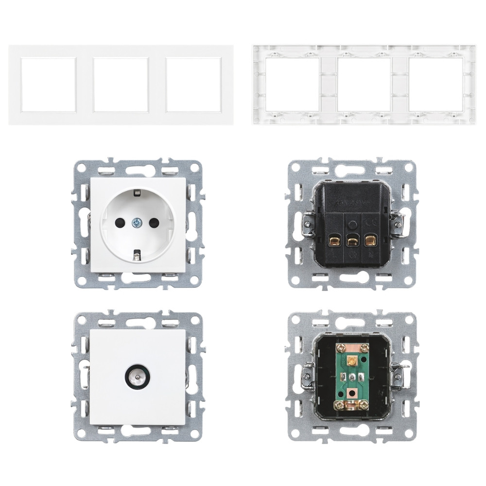Comandați acum priza cu două împământare Nova III cu priză TV și completați-vă sistemul cu rame Nova, prize USB și UTP, întrerupătoare - tot ce aveți nevoie pentru un sistem de amenajare interioară fiabil și curat.