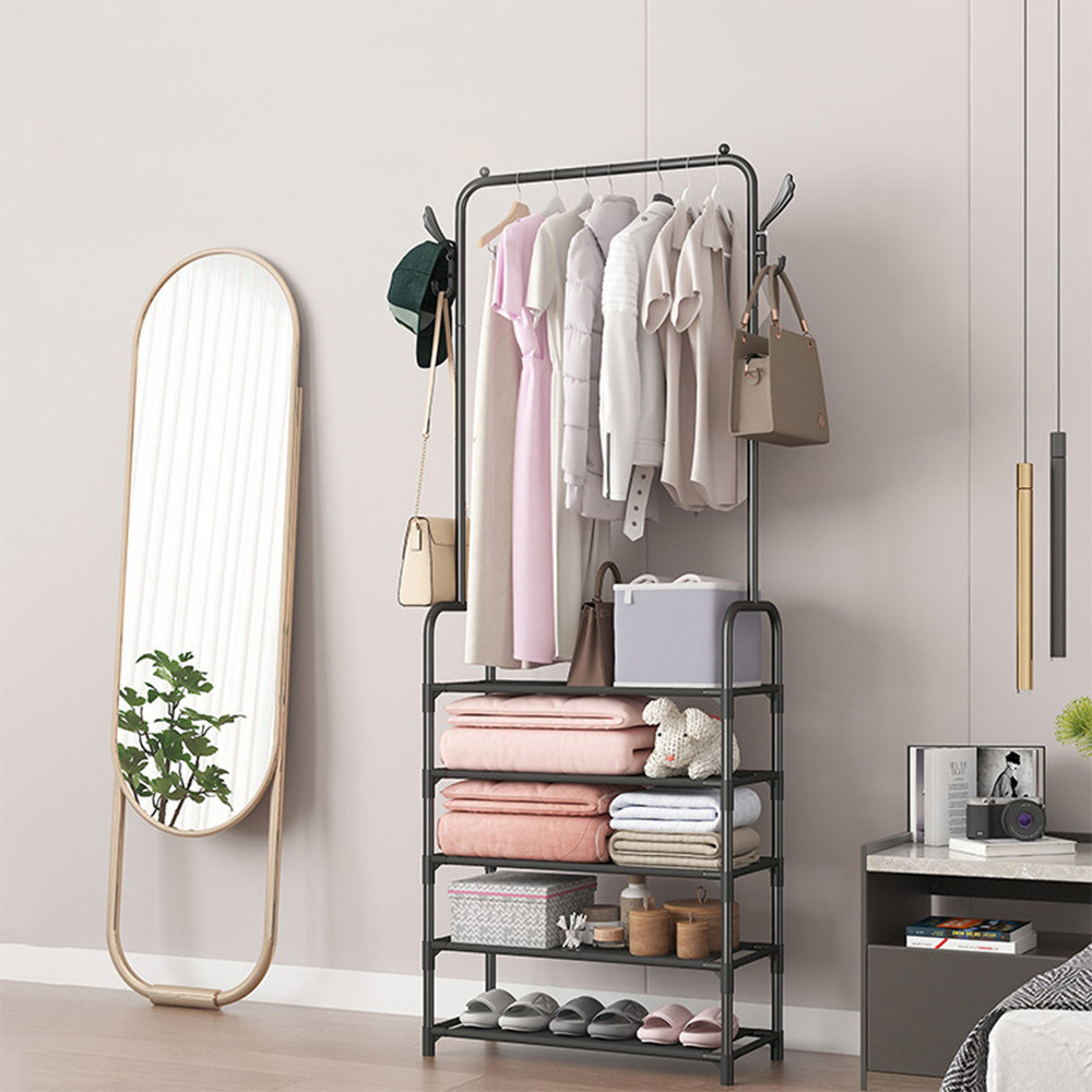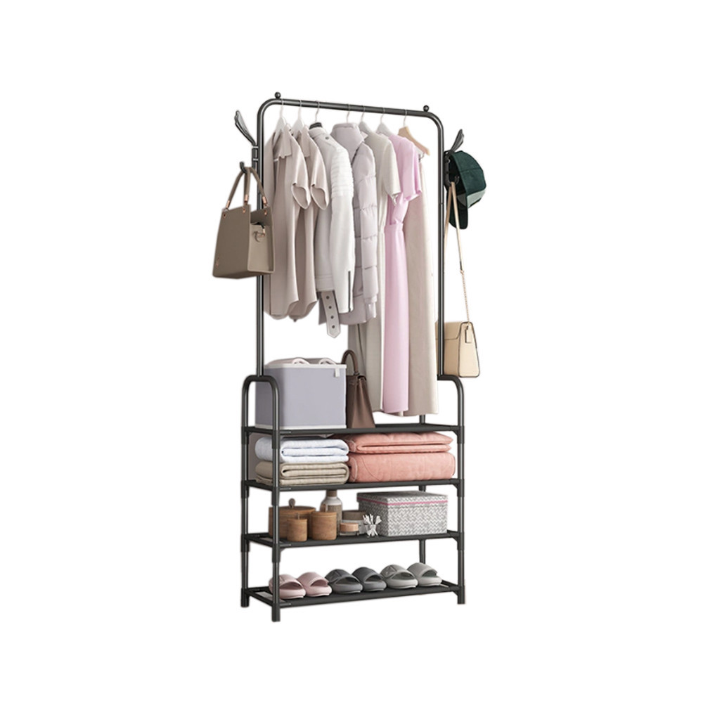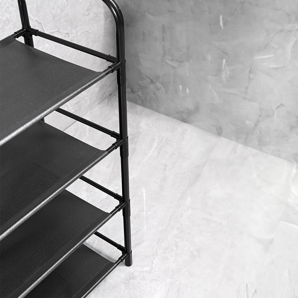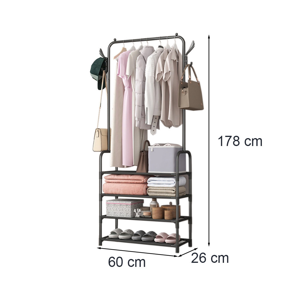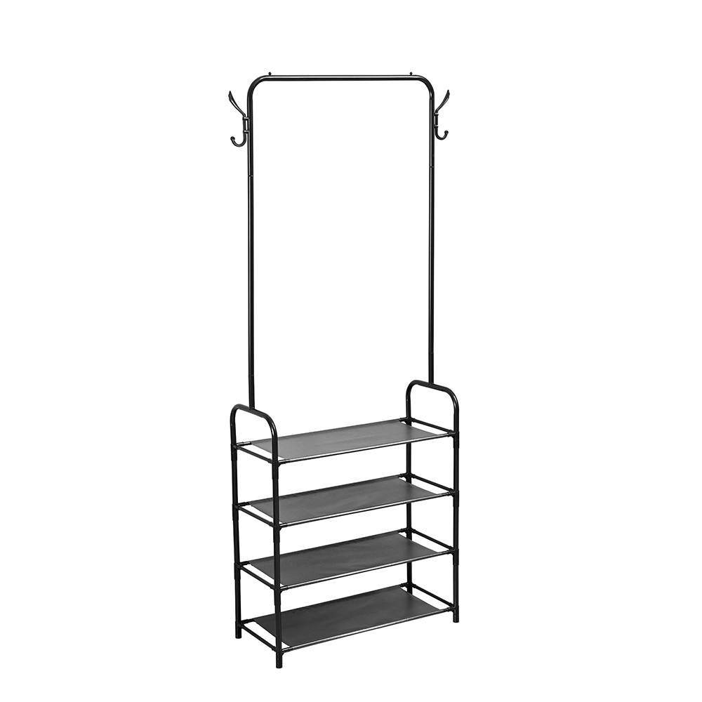 Designul cu 4 niveluri permite depozitarea organizată a hainelor, încălțămintei și pălăriilor. Rafturile inferioare sunt ideale pentru încălțăminte, în timp ce nivelurile superioare sunt perfecte pentru depozitarea altor accesorii. Suportul este ușor de asamblat și se potrivește în spații mici datorită dimensiunilor sale compacte.
