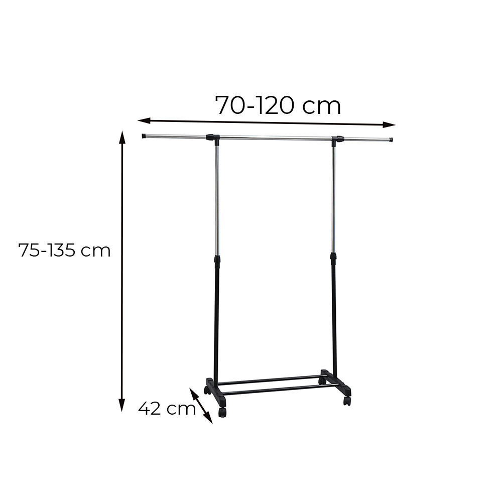 Suportul de haine negru LRA-06 este o soluție practică și elegantă pentru oricine caută un accesoriu ușor de transportat, dar stabil și durabil pentru casa sau biroul său. Acest suport reglabil pe înălțime este o alegere ideală pentru depozitarea hainelor și accesoriilor.