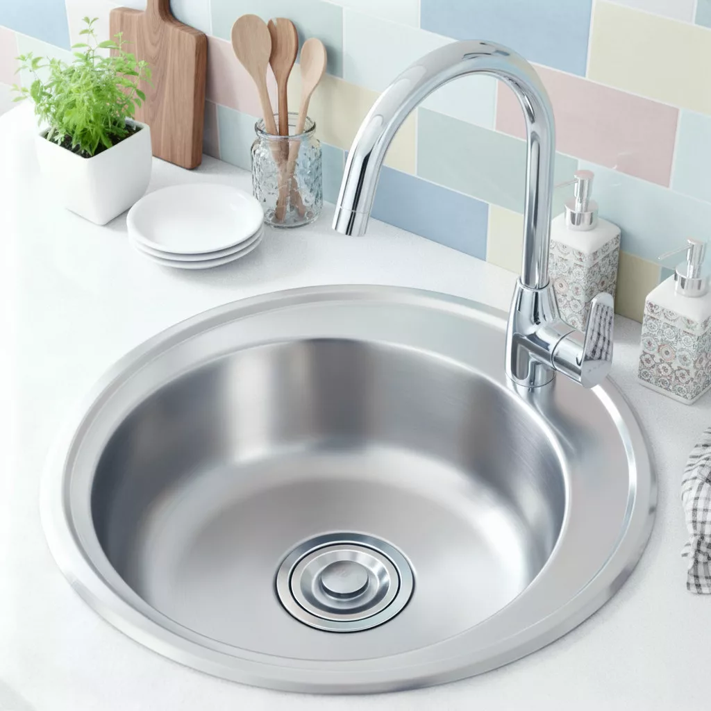 Chiuvetă rotundă Teur cu o singură cuvă din oțel inoxidabil - Stilul și practicitatea se întâlnesc
