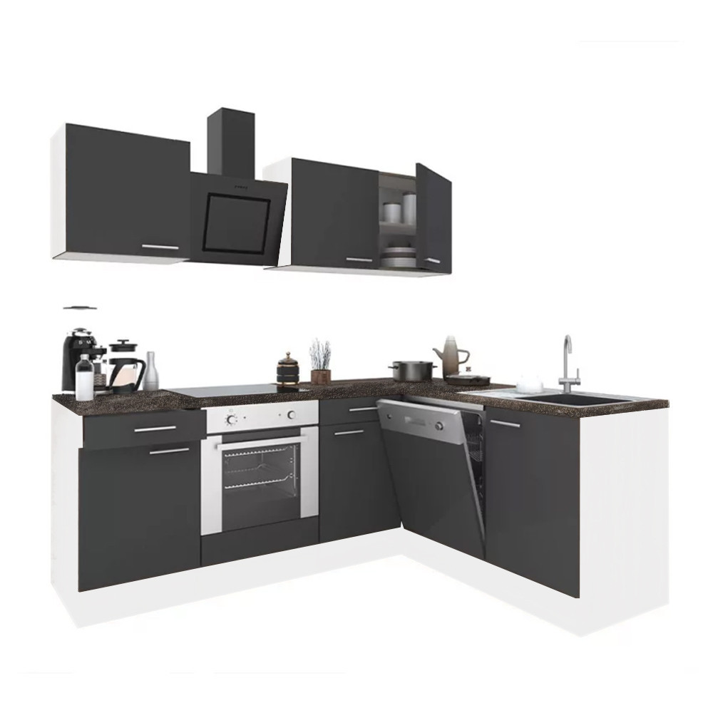 Unitate de bucătărie de colț Yorki 220 cu corp alb și față antracit satinat. Creatorul bucătăriei perfecte!