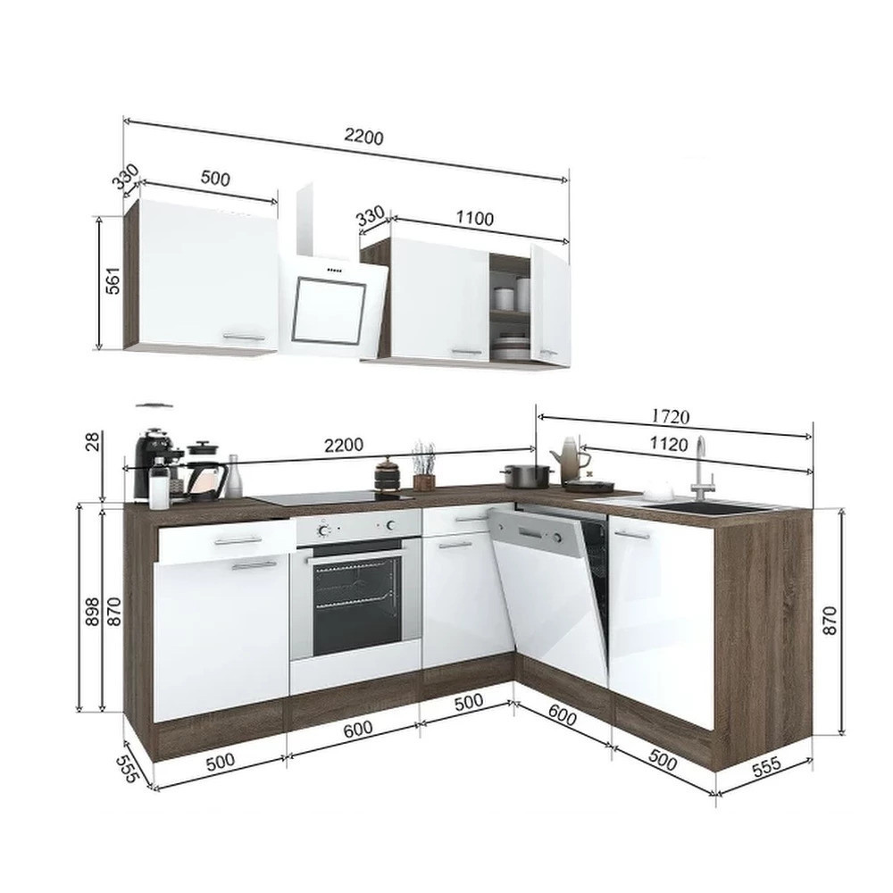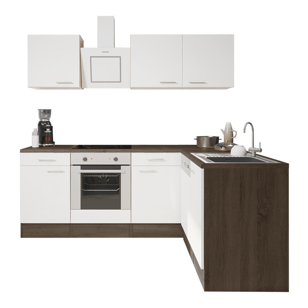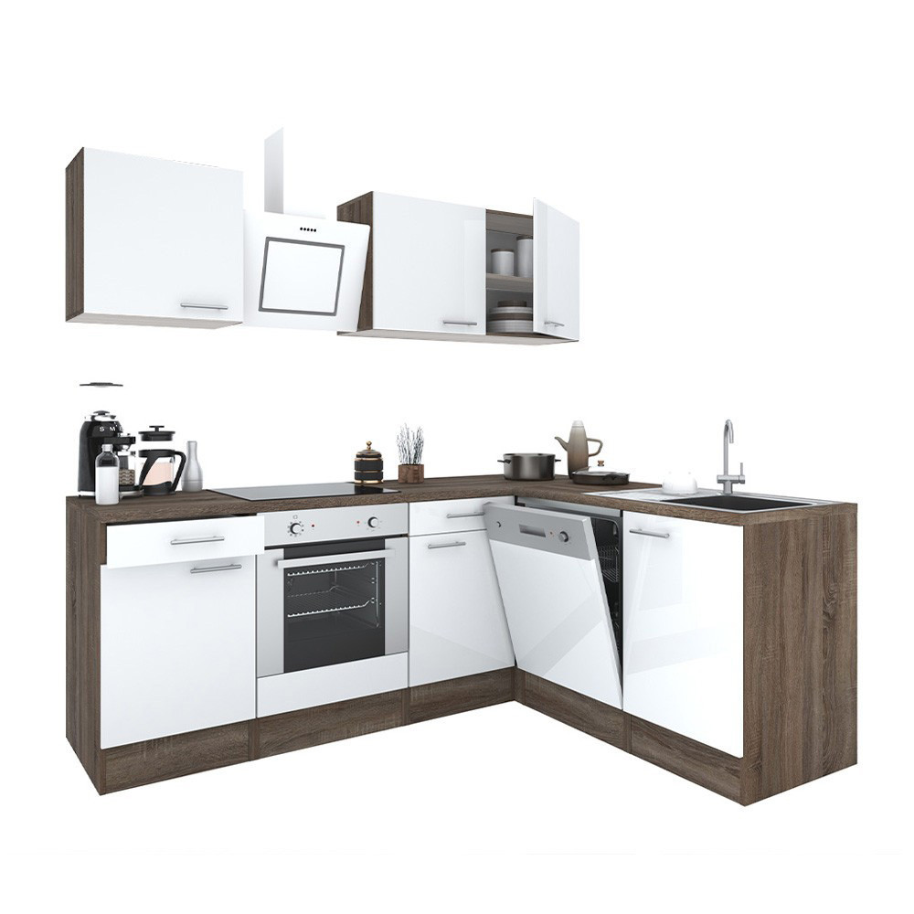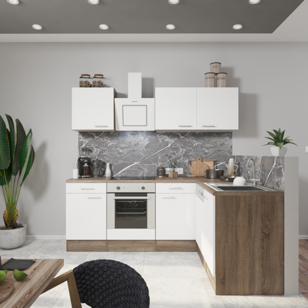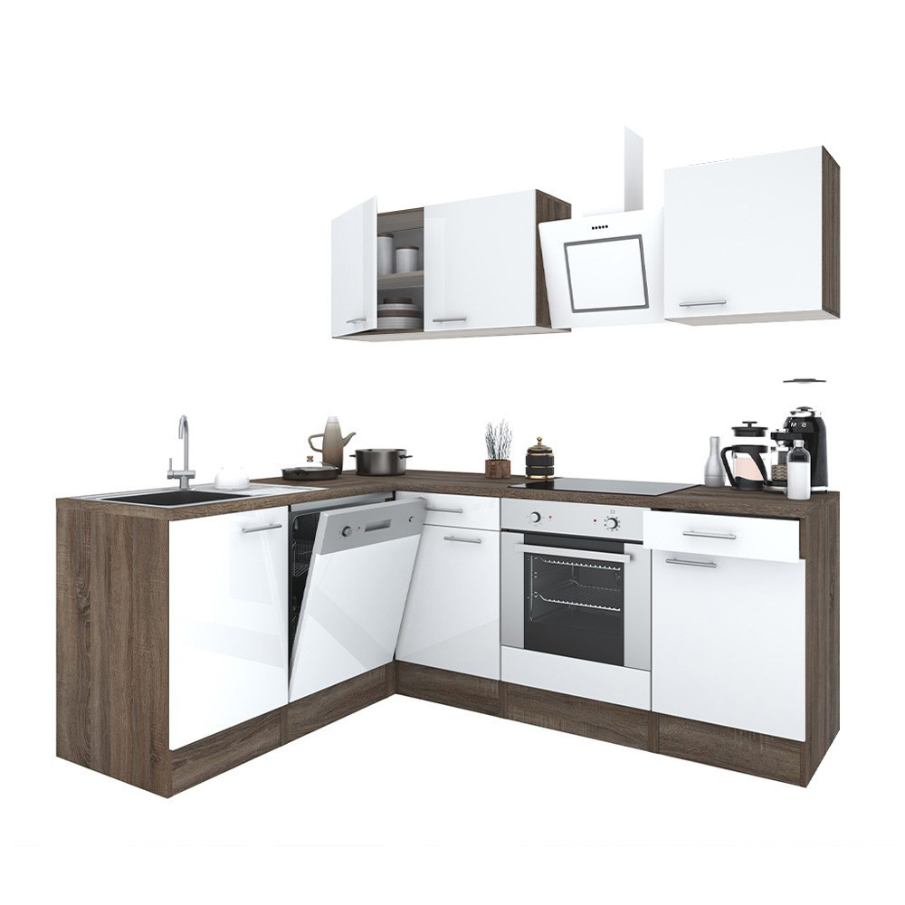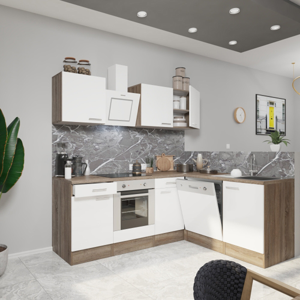 Unitate de bucătărie de colț Yorki 220, corp din stejar Yorki, cu față alb satinat. Creatorul bucătăriei perfecte!