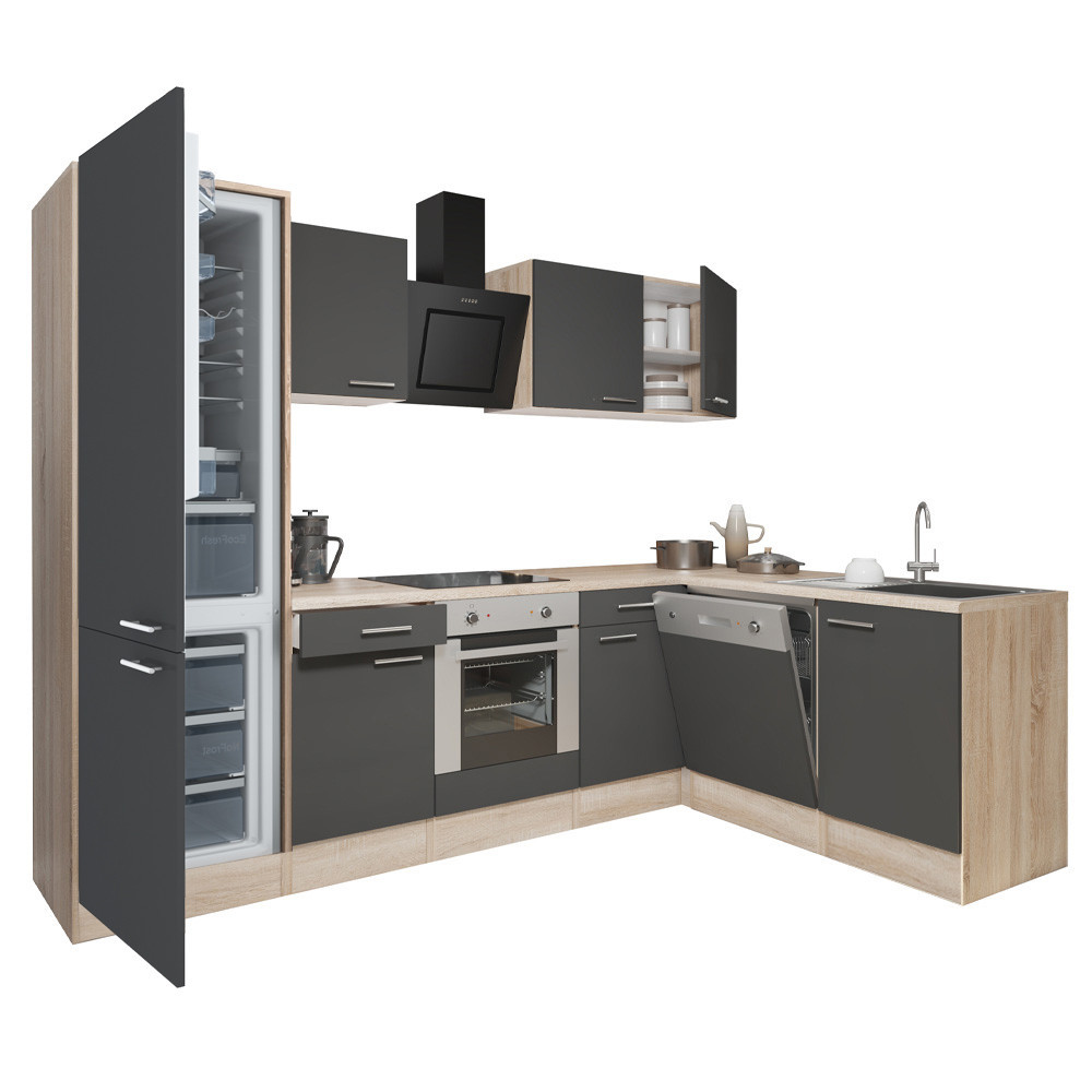 Mobilier de bucătărie modular de înaltă calitate, produs în țară, care va satisface nevoile oricărui client. Corp realizat din placă laminată pentru mobilier de 16 mm , de culoare stejar sonoma. Când este asamblat, pinii ombilicali și șuruburile de confirmare îl fac suficient de solid. Blatul de lucru este fabricat peste elemente și are o grosime de 28 mm .