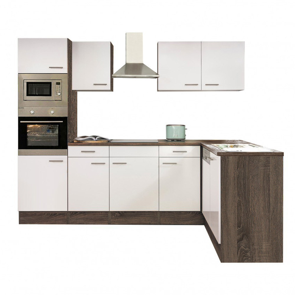 Unitate de bucătărie de colț Yorki 280, corp din stejar, cu față alb satinat. Creatorul bucătăriei perfecte!