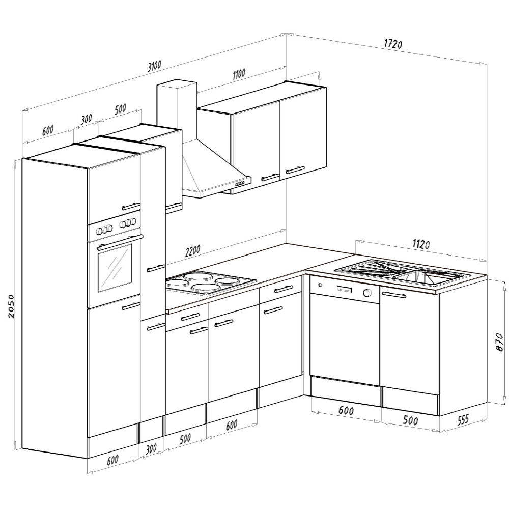 Corp de bucătărie de colț Yorki 310, corp alb, cu față alb satinat. Creatorul bucătăriei perfecte!