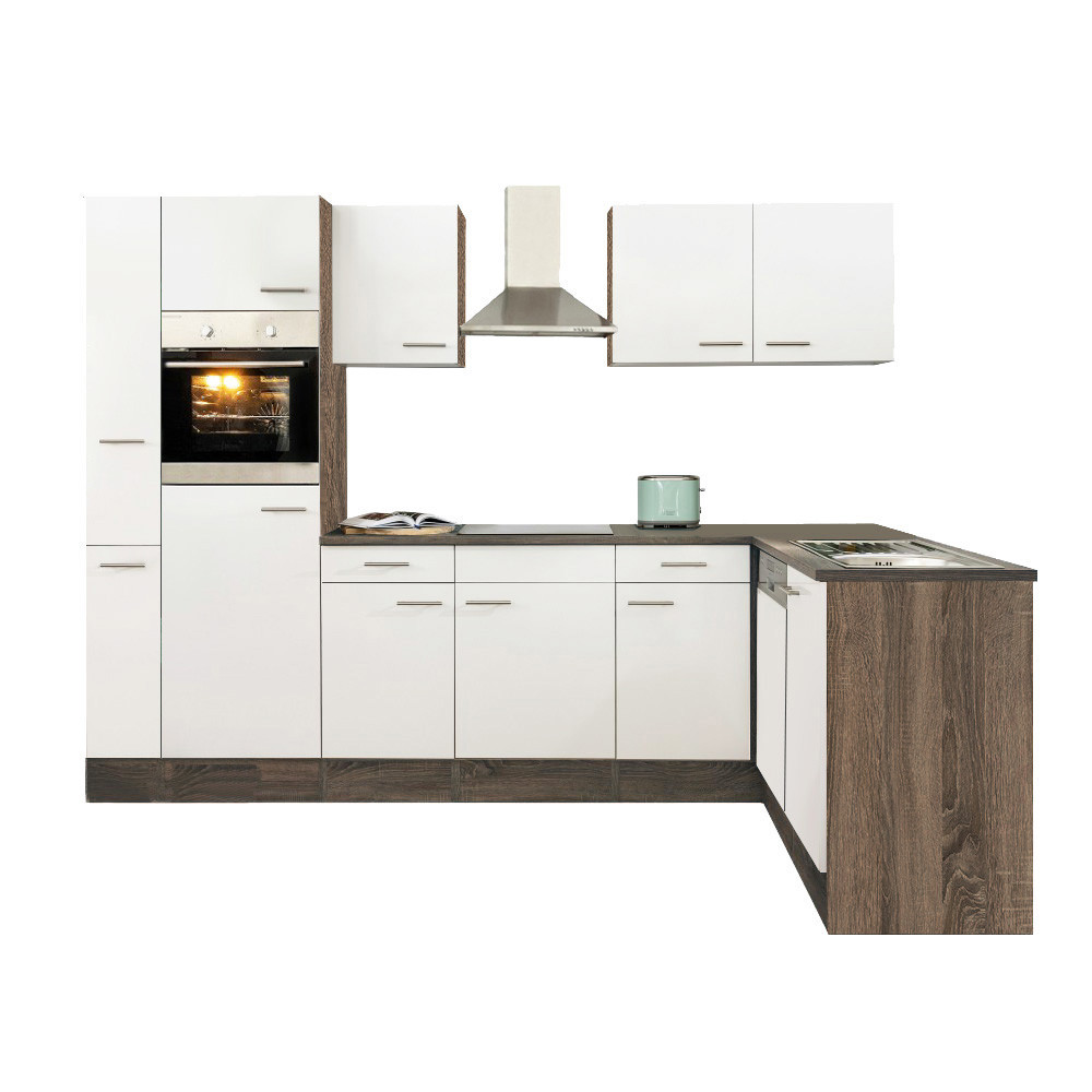 Unitate de bucătărie de colț Yorki 310, corp din stejar, cu față alb satinat. Creatorul bucătăriei perfecte!