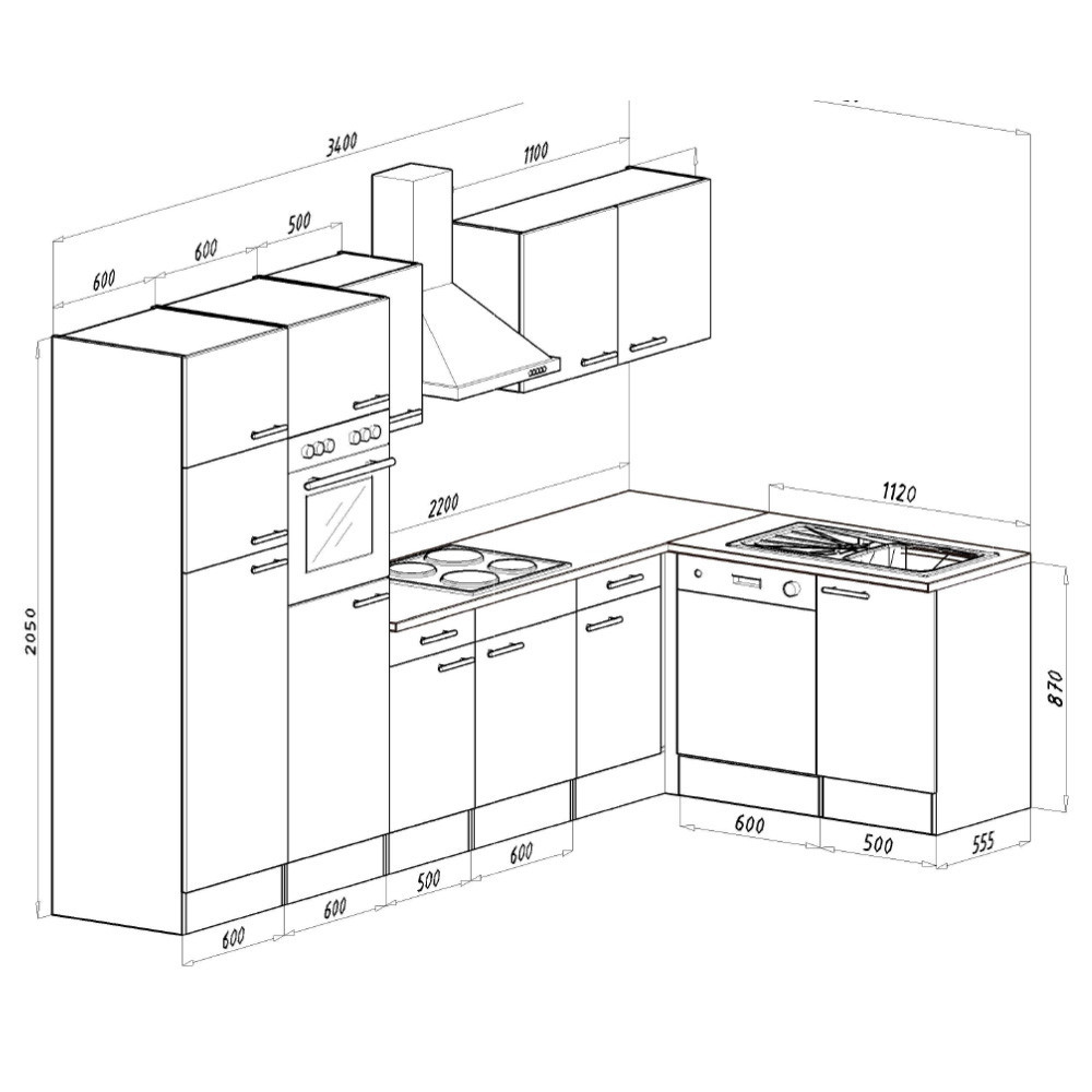 Unitate de bucătărie de colț Yorki 340, corp alb, cu față alb satinat. Creatorul bucătăriei perfecte!