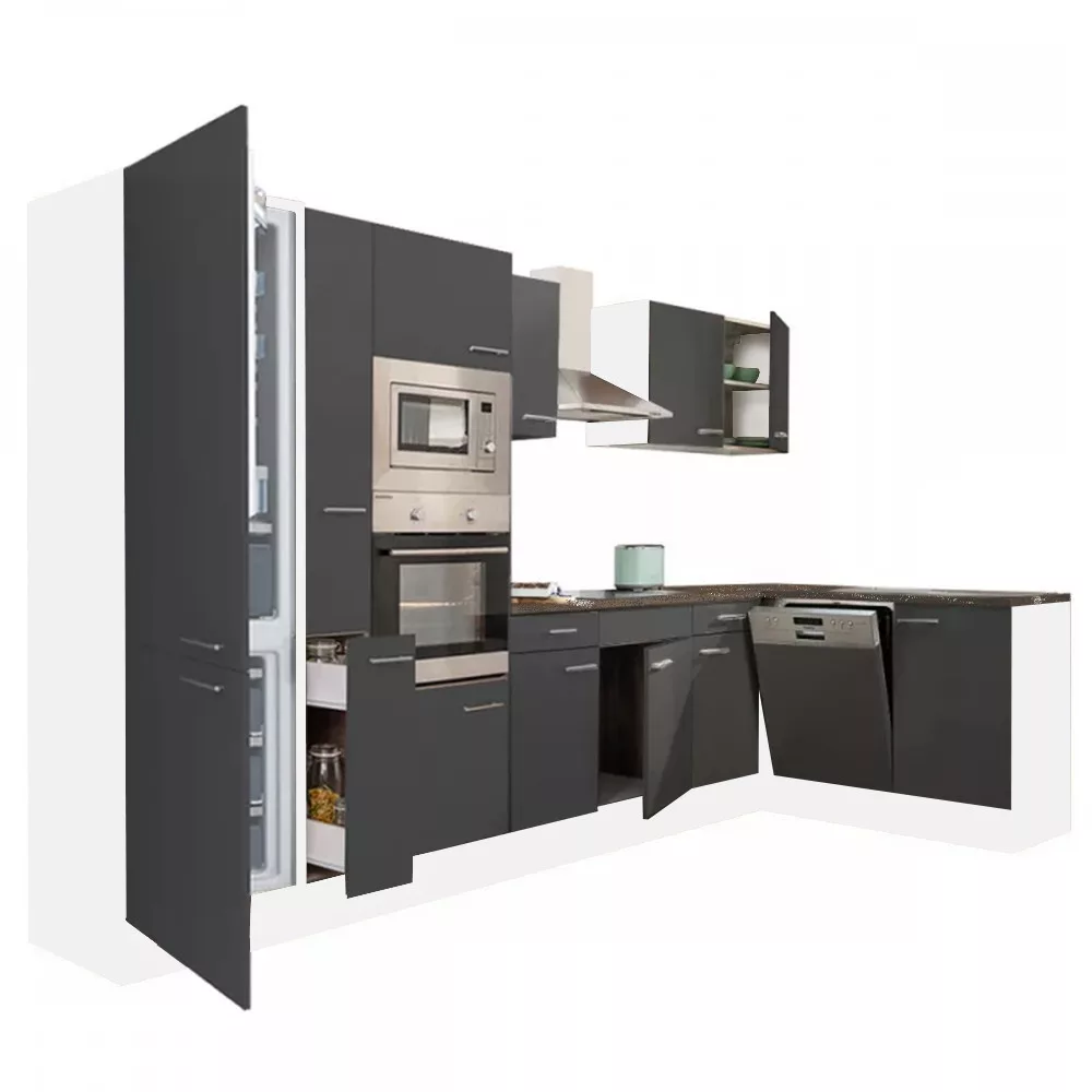 Unitate de bucătărie de colț Yorki 370 cu corp alb și față antracit satinat. Creatorul bucătăriei perfecte!