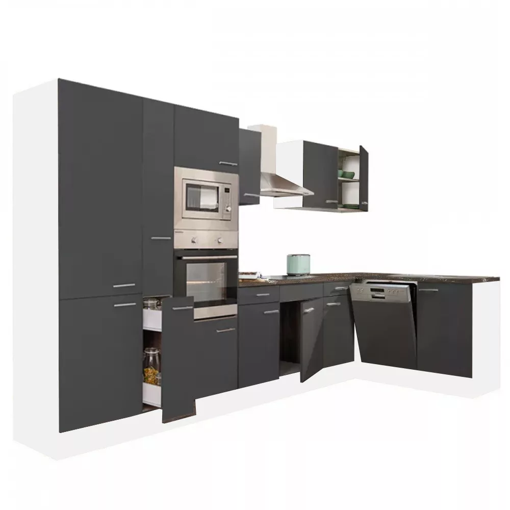 Unitate de bucătărie de colț Yorki 370 cu corp alb și față antracit satinat. Creatorul bucătăriei perfecte!