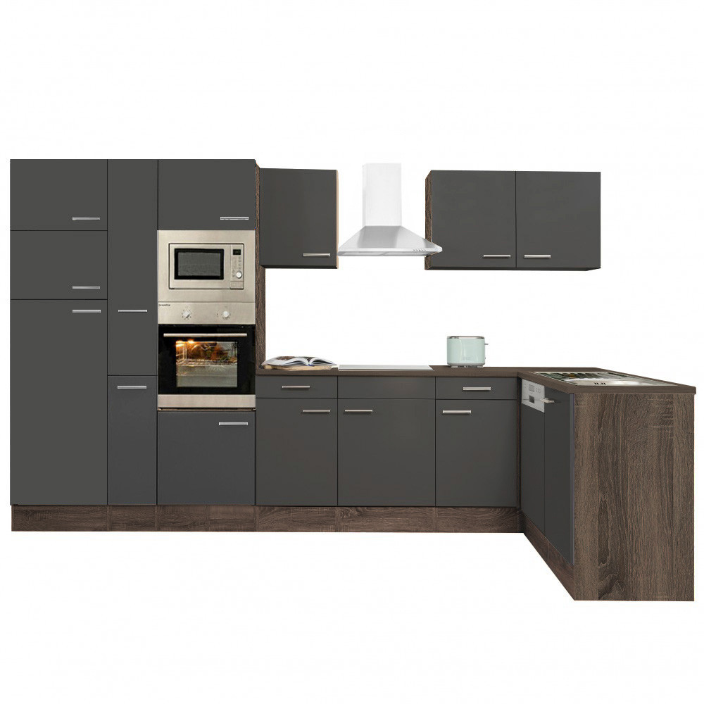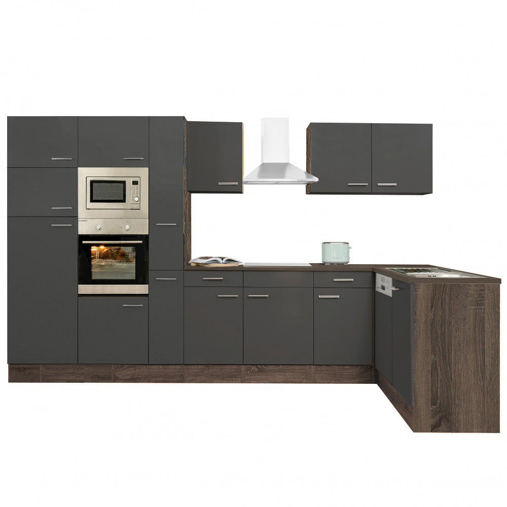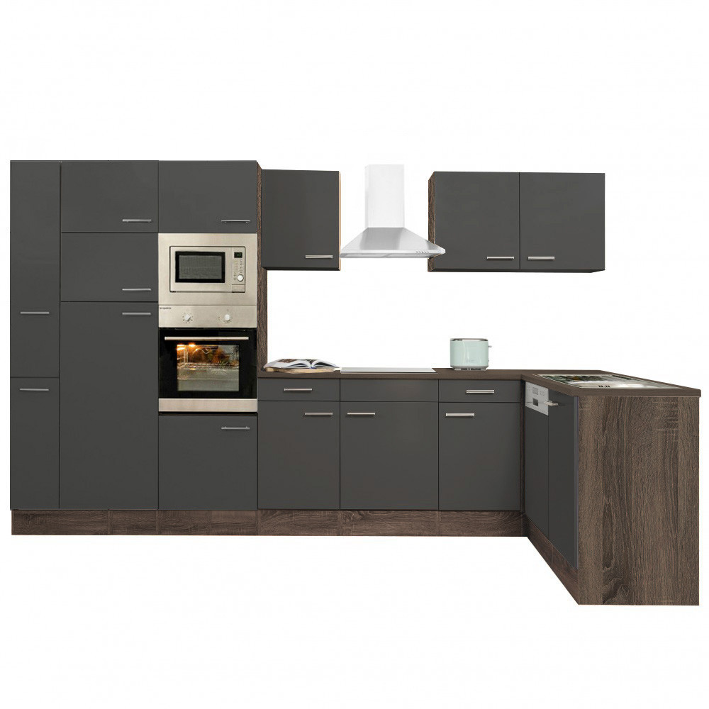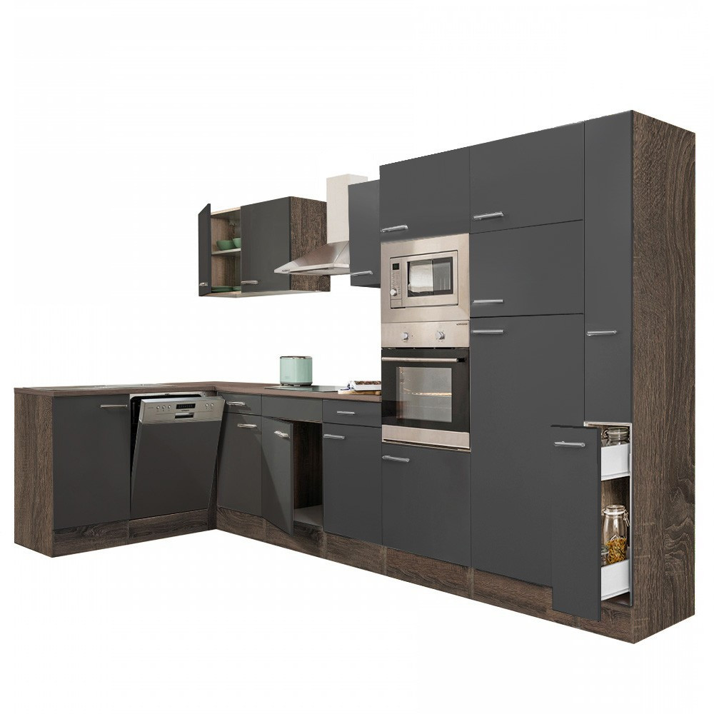 Unitate de bucătărie de colț Yorki 370 cu corp din stejar și față antracit satinat. Creatorul bucătăriei perfecte!