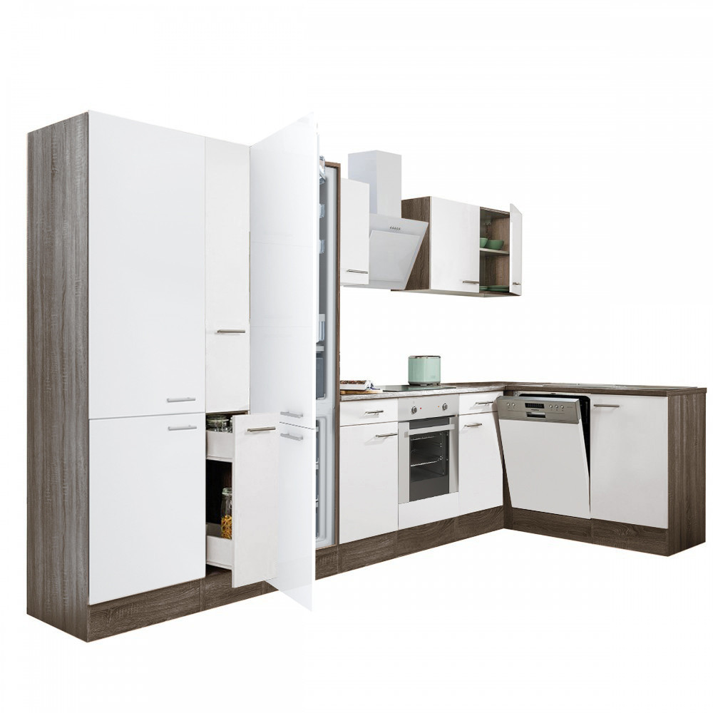 Unitate de bucătărie de colț Yorki 370 cu corp din stejar și față alb satinat. Creatorul bucătăriei perfecte!