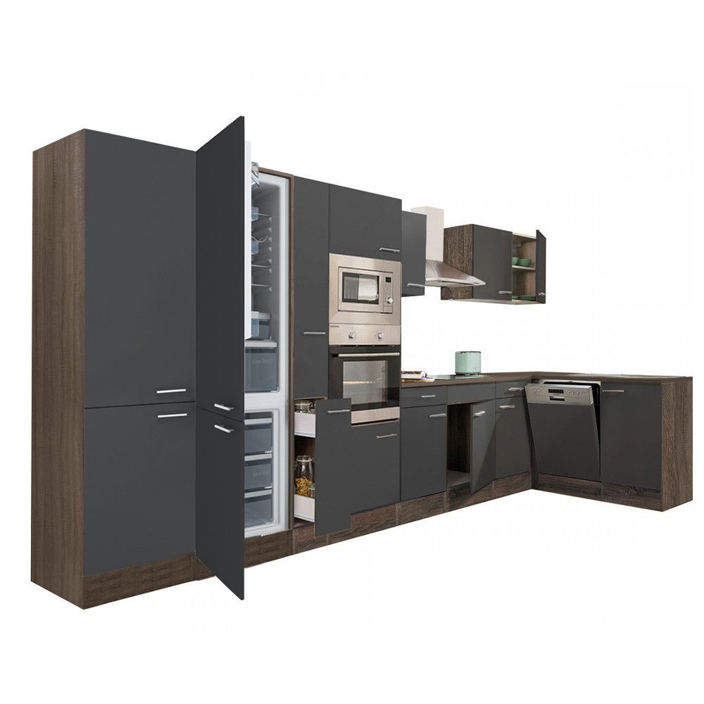 Unitate de bucătărie de colț Yorki 430, corp din stejar, cu față antracit satinat. Creatorul bucătăriei perfecte!