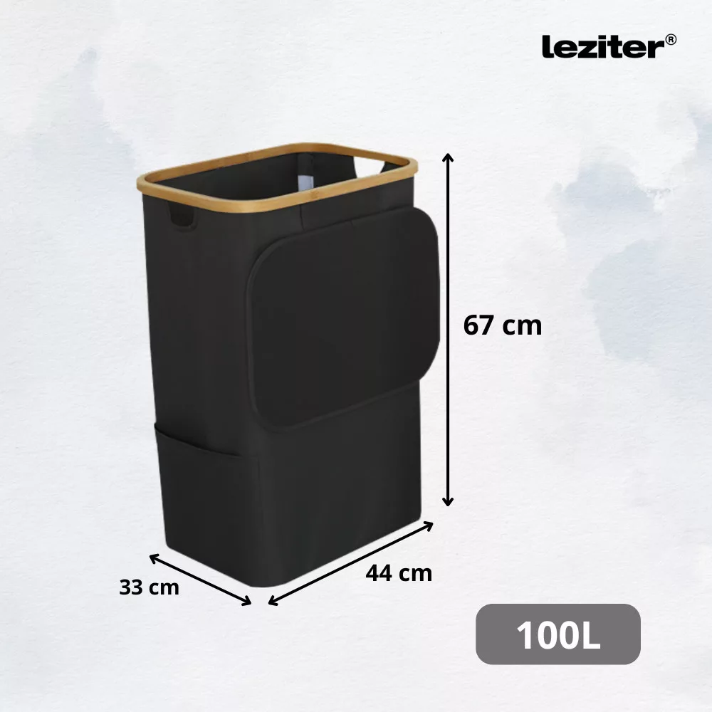 Acest coș de rufe Leziter de 100 de litri este alegerea ideală pentru baie sau dormitor dacă doriți o capacitate mare și un aspect curat. Datorită sacului interior detașabil cu file, sortarea înainte de spălare este rapidă și igienică. Designul său robust, care economisește spațiu și combinația de culori cu aspect natural îl fac perfect pentru casele moderne.
