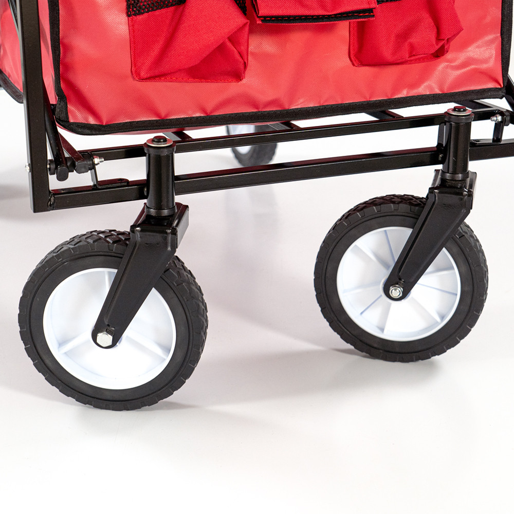 Material : Căruciorul de plajă are un cadru din oțel, care este extrem de stabil și durabil. Coșul este fabricat din țesătură de poliester 600D, care este nu numai rezistentă și durabilă, ci și ușor de curățat. Culoarea roșu aprins conferă mașinii un aspect atrăgător.