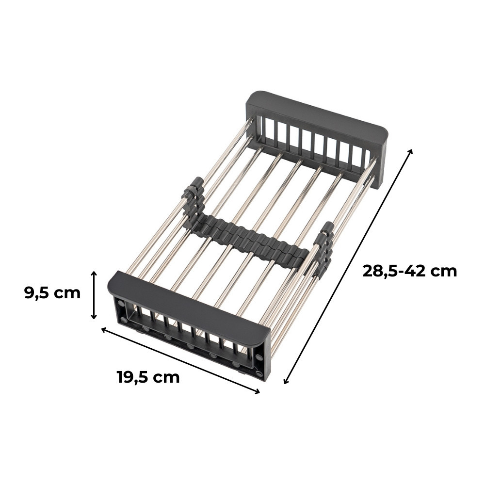 O provocare zilnică în bucătărie: spațiu insuficient pentru uscarea vaselor, spălarea incomodă a fructelor și legumelor și un blat dezordonat. Împachetarea constantă și căutarea de spațiu pot fi frustrante, mai ales într-o bucătărie mai mică. Coșul telescopic este fabricat din oțel inoxidabil și material ABS durabil care rezistă la coroziune, astfel încât va oferi ani de serviciu în bucătăria dvs. Datorită designului său reglabil, se potrivește aproape oricărei dimensiuni de chiuvetă (290-475 cm), inclusiv chiuvetelor din inox Leziter. Ideal pentru uscarea vaselor, spălarea fructelor și legumelor și poate fi folosit chiar și ca strecurătoare. Suporturile antiderapante asigură stabilitate, în timp ce culoarea neagră elegantă se va potrivi cu orice bucătărie.