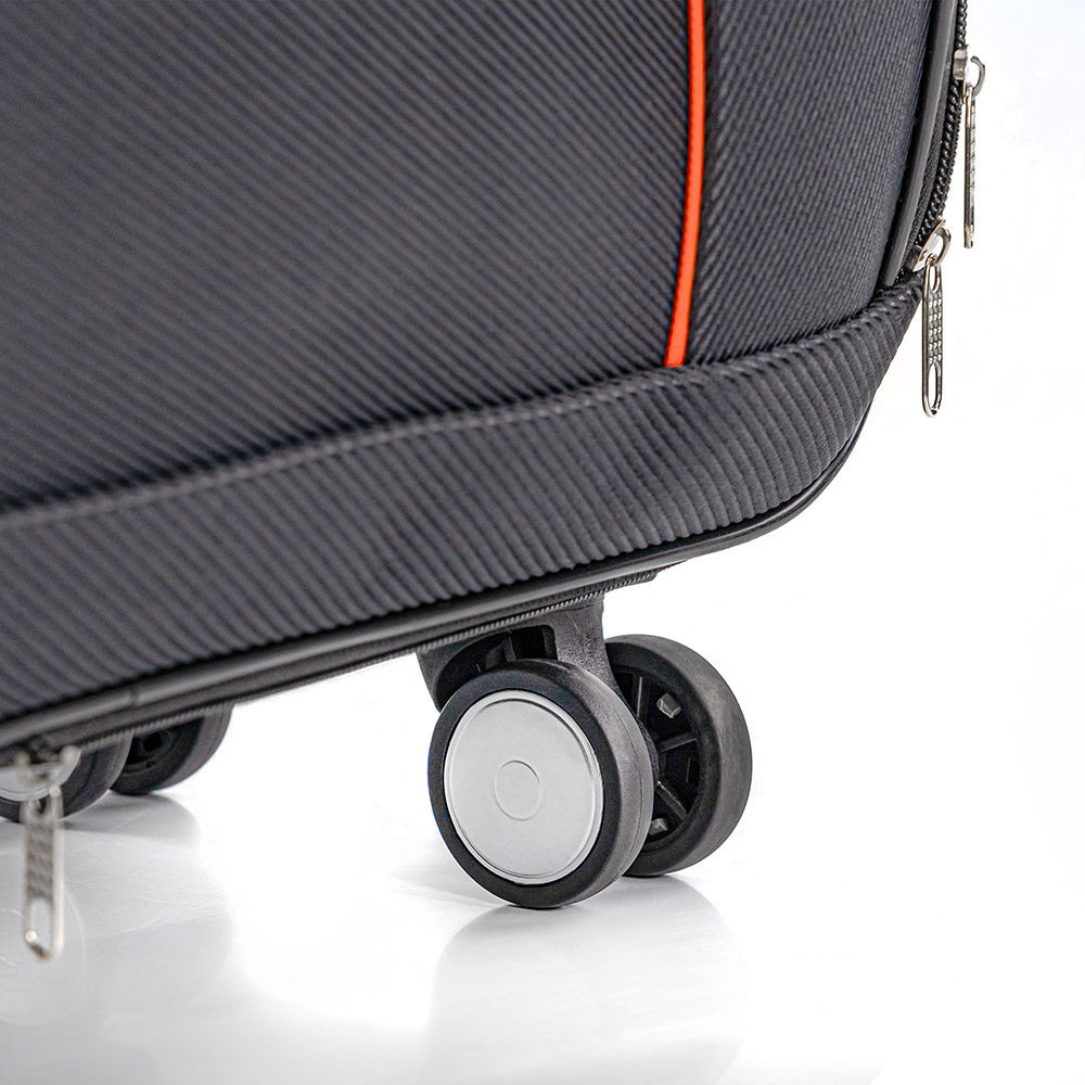 Cele patru roți duble asigură o mișcare silențioasă și lină pentru ambele valize în orice direcție. Roțile detașabile ale valizei de cabină îi permit să îndeplinească cerințele de dimensiune a bagajului de cabină ale majorității companiilor aeriene - ideal pentru călătoriile cu avionul.