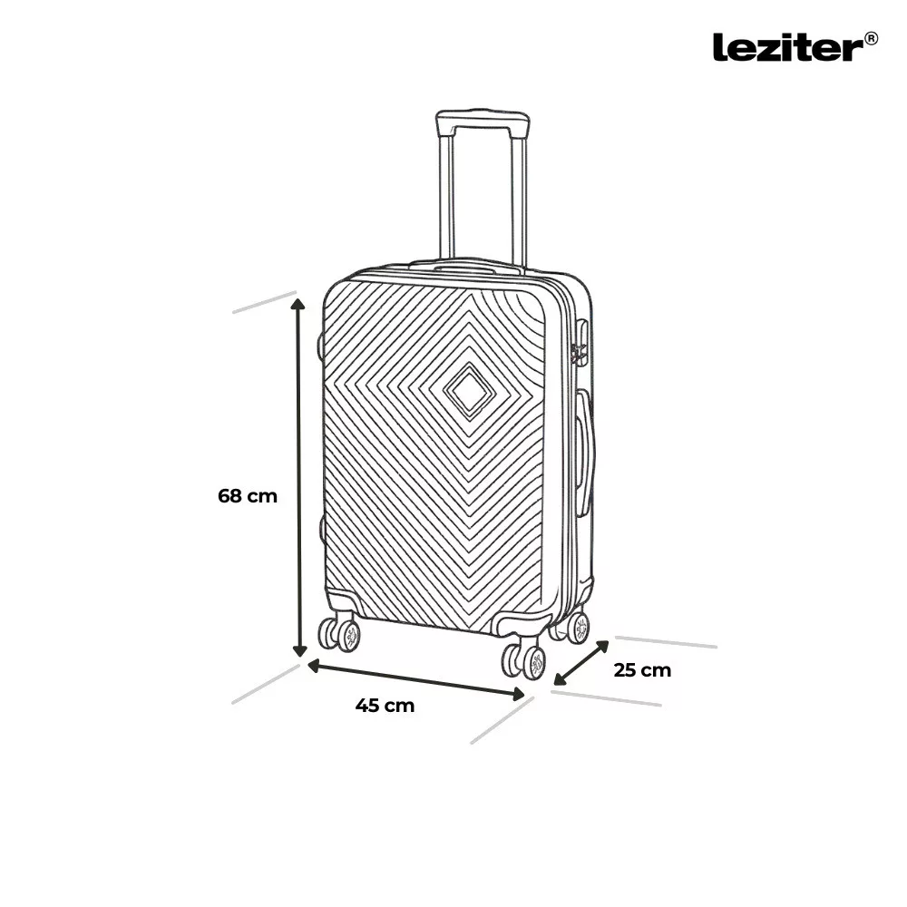 - Valiză medie: 68 × 45 × 25 cm | 60 litri | 2,65 kg