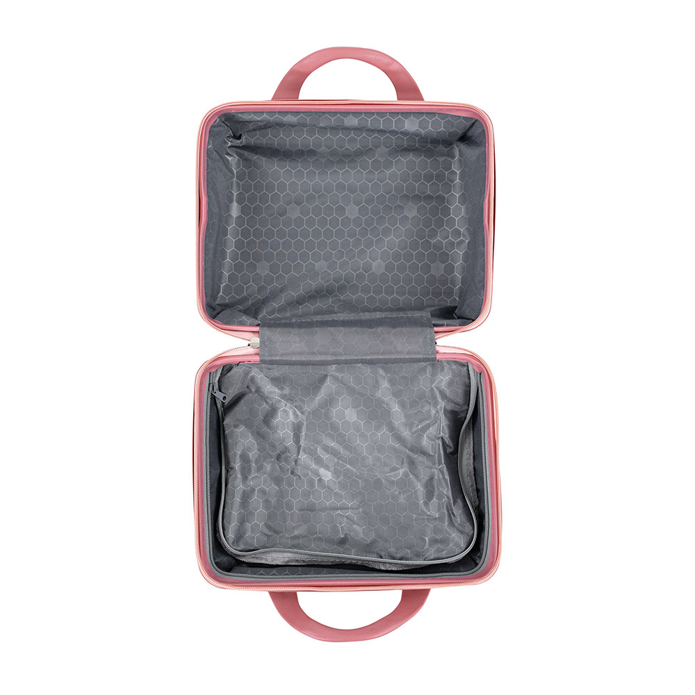 Ambele piese sunt fabricate din plastic ABS rezistent, dar ușor, care rezistă la lovituri și zgârieturi. Designul capacului dur oferă protecție solidă - indiferent dacă împachetați obiecte de valoare sau articole de toaletă mici.